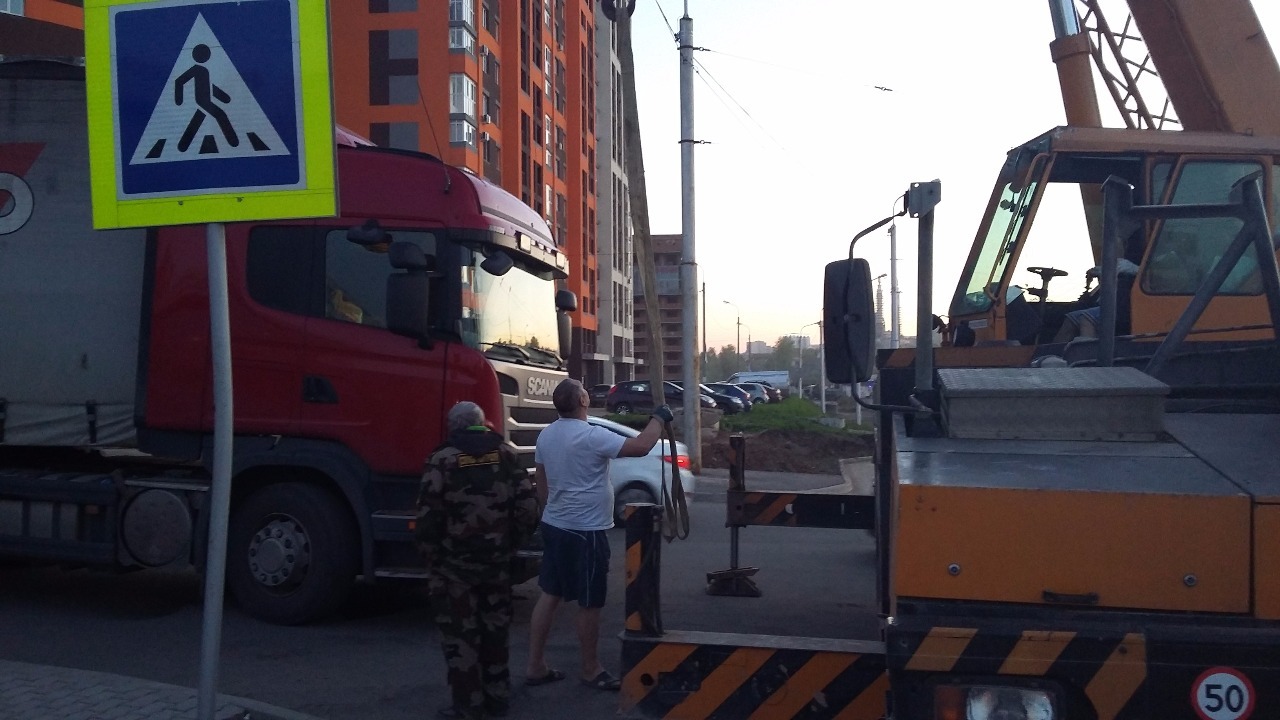В Уфе провалившуюся в асфальт фуру вытащили с помощью крана – видео