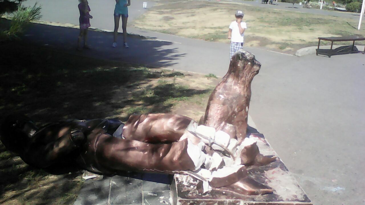 Злоумышленники не пожалели «Романтика»: видимо, основные удары пришлись на ноги скульптуры, из-за чего она рухнула и разбилась. Из всей композиции неизвестные оставили нетронутой лишь собаку. Большинство подписчиков считают, что разрушение скульптурной группы - дело рук нетрезвой молодежи.
