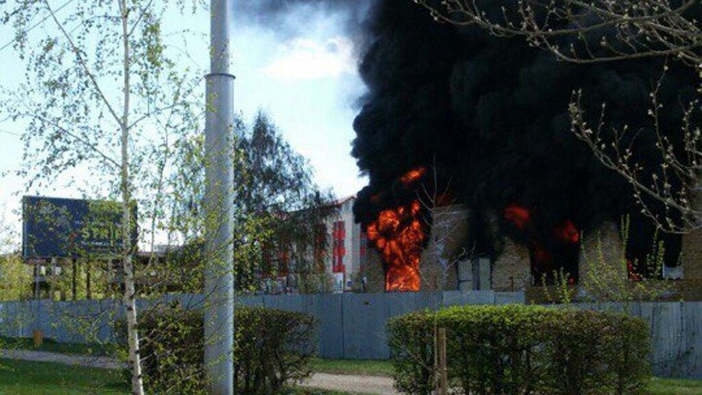 УФА, 4 май 2017. /ИА «Башинформ», Ксения Калинина/. В Башкортостане, в городе Октябрьском, горит недостроенное здание аквапарка. По словам очевидцев, выложивших 4 мая многочисленные фотографии и видеоматериалы в нескольких