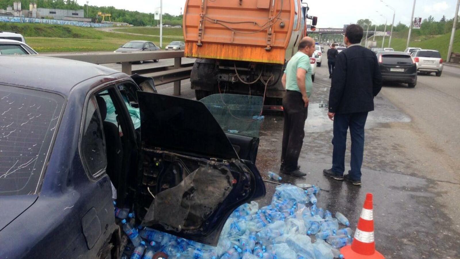 В Уфе Subaru столкнулся с поливомоечной машиной