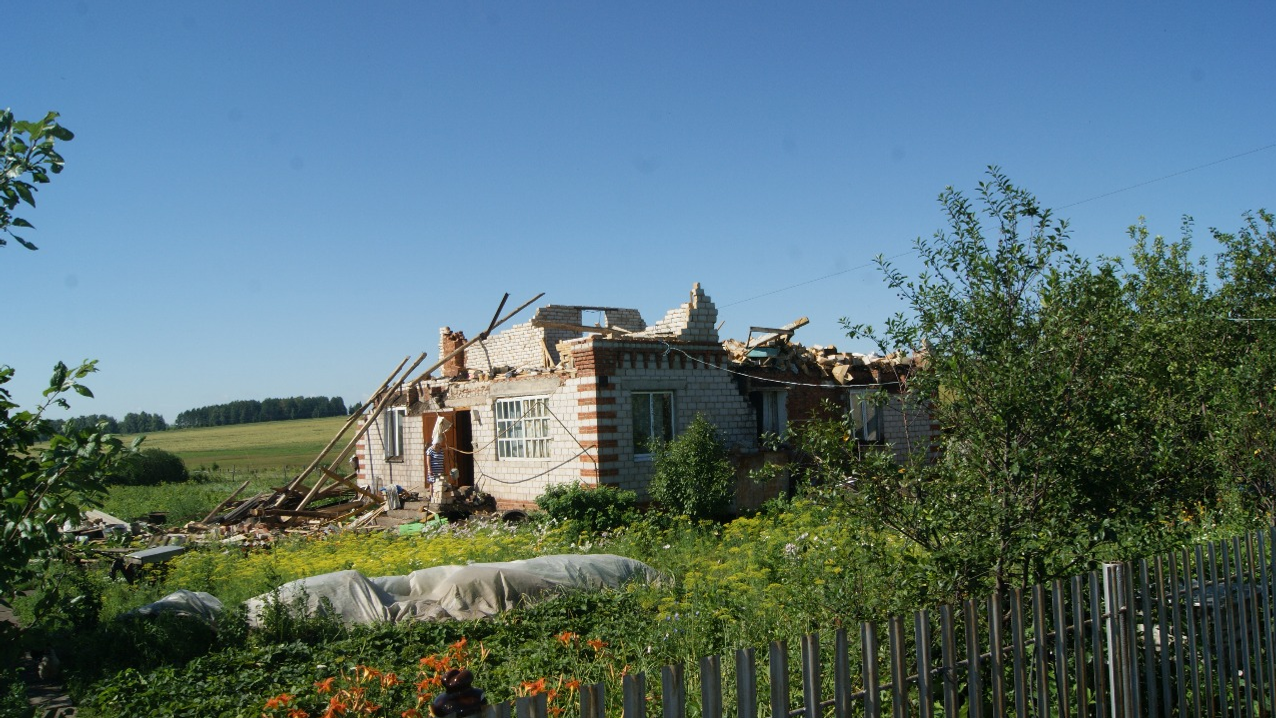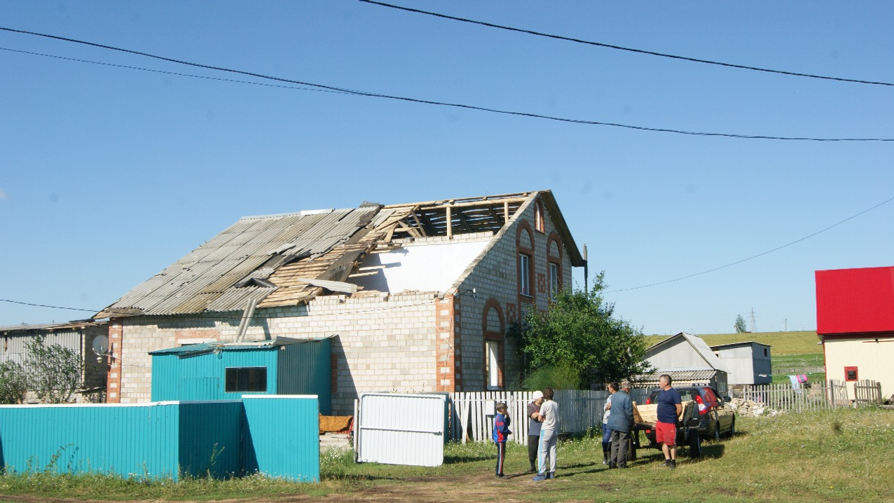 УФА, 7 авг 2017. /ИА «Башинформ», Алим Фаизов/. Поздно вечером в минувшую субботу на деревню Куезбашево Аургазинского района обрушился ураган. Он принес многочисленные разрушения, некоторые дома стали непригодными для проживания. Пострадали надворные постройки, было повалено множество деревьев, повреждены автомобили. К счастью, обошлось без жертв. Все спецслужбы, соответствующие должностные лица администрации Аургазинского района, глава сельского поселения Батыровский сельсовет выехали на место происшествия. Уже ночью велась работа по расчистке дорог от поваленных деревьев, восстановлена подача электричества. В воскресенье утром глава администрации района Зуфар Идрисов провел выездное экстренное совещание, на котором озвучены предварительные масштабы произошедшего и поставлены задачи. На данный момент проводится подворный обход, ведется предварительная оценка ущерба от стихийного бедствия, но уже сейчас можно сказать, что последствия катастрофы исчисляются несколькими миллионами рублей. Газовые службы отключают от газа дома, ставшие непригодными для проживания и представляющие угрозу. Ведутся работы по разбору завалов.