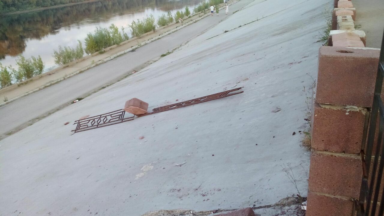 УФА, 27 авг 2017. /ИА «Башинформ», Ольга Муртазина/. Жители улицы Набережная реки Уфы в микрорайоне Сипайлово заметили действия вандалов и поделились информацией в соцсетях. Хулиганы повредили ограду, оторвав фрагмент металлической решетки и снеся навершие столба.