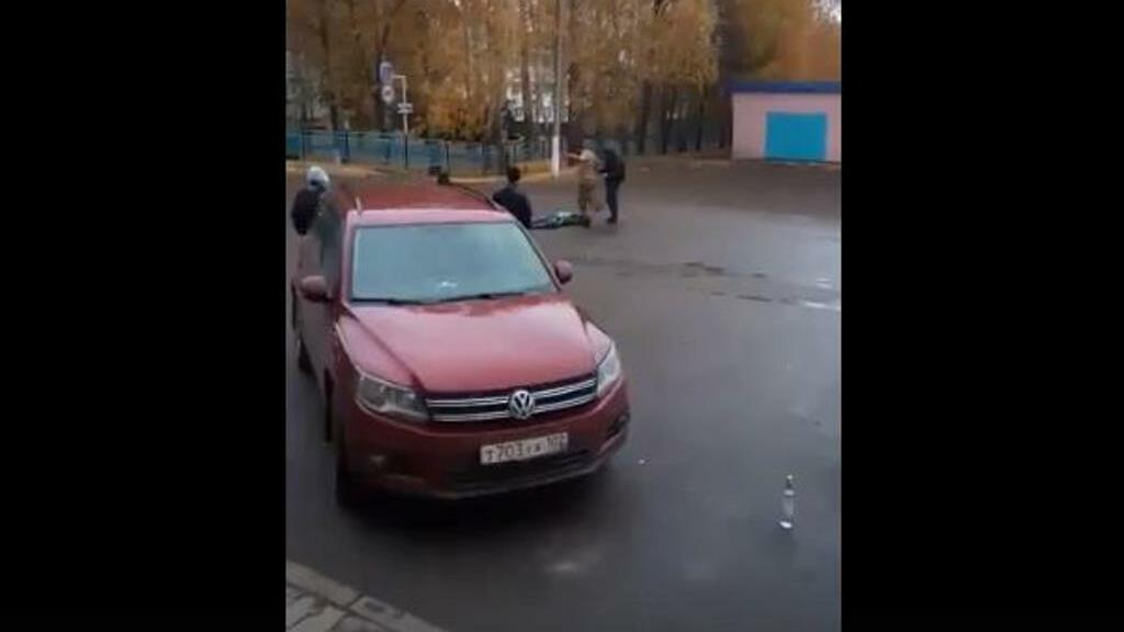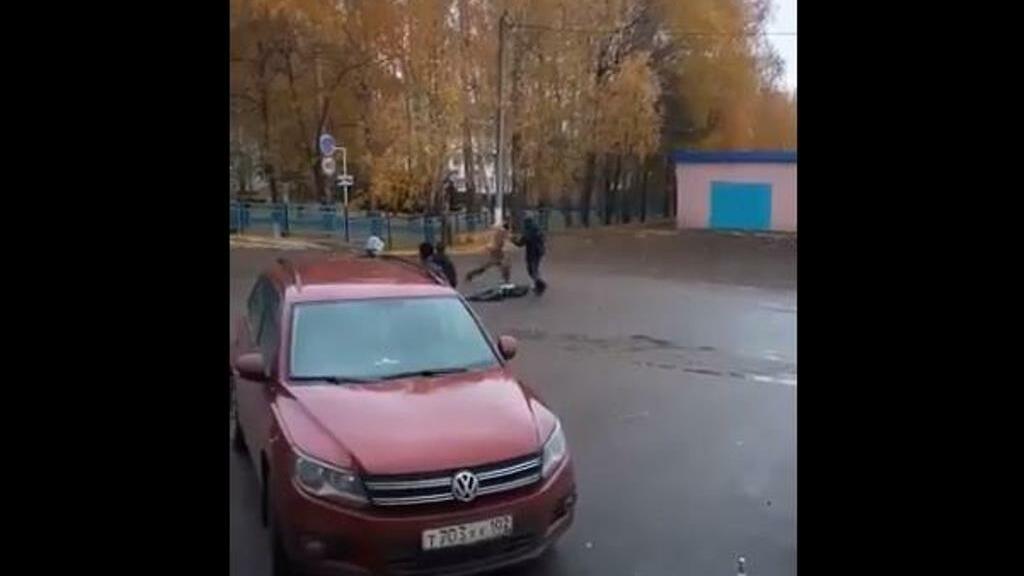 запись, сделанную очевидцем на мобильный телефон. На ней видно, как неизвестный бородатый мужчина бьет ногами по голове свою жертву, лежащую на асфальте. Парень с рюкзаком пытается его остановить, но тот не унимается и еще несколько раз наносит удары ногой. Мимо проезжает машина, идут прохожие, но никто не пытается остановить жестокую расправу. Стоит отметить, что на асфальте рядом с иномаркой лежит верхняя одежда бьющего мужчины и стоит бутылка, видимо, из-под алкоголя.