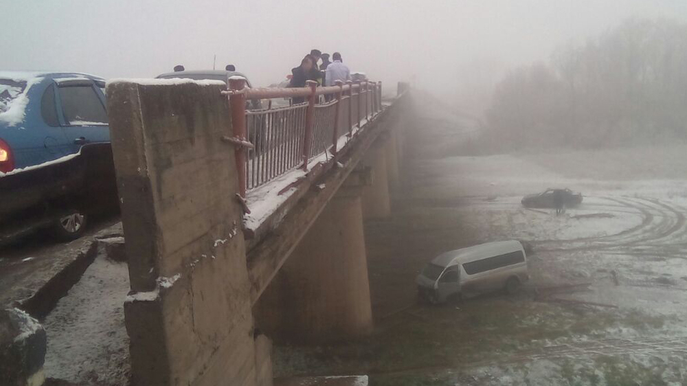 В Башкирии микроавтобус Toyota Hiace упал с девятиметрового моста, пострадали пассажиры