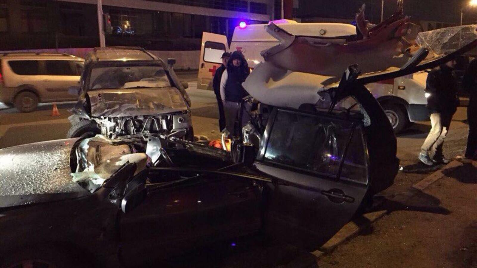 УФА, 11 ноя 2017. /ИА «Башинформ», Эльмира Сабирова/.Страшная авария со смертельным исходом произошла в Уфе в ночь на 11 ноября. На пересечении улиц Маршала Жукова и Новоженова столкнулись два автомобиля: внедорожник и «Мицубиси Лансер».