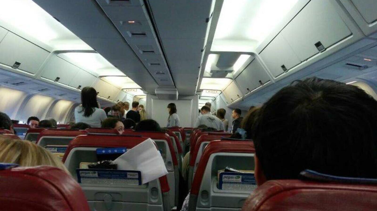 УФА, 16 ноя 2017. /ИА «Башинформ», Дарья Петрова/. Вылет самолета Boeing 767-300 авиакомпании «Икар» из Уфы в Пхукет задержался по вине пьяного дебошира. Фото из салона воздушного судна в соцсетях выложили пассажиры, летевшие этим рейсом, добавив, что до прихода полицейских мужчину пришлось запереть в туалете.