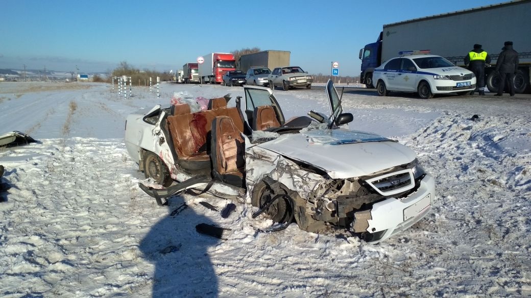 В Башкирии на М5 три пассажира Daewoo Nexia погибли в столкновении с грузовиком
