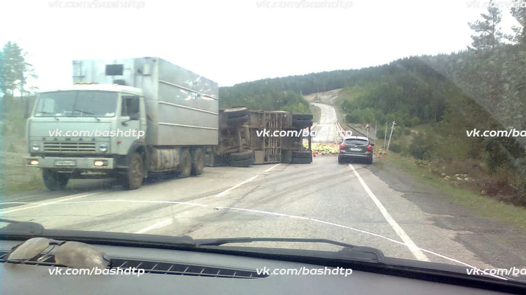 В Башкирии перевернулся грузовик с арбузами