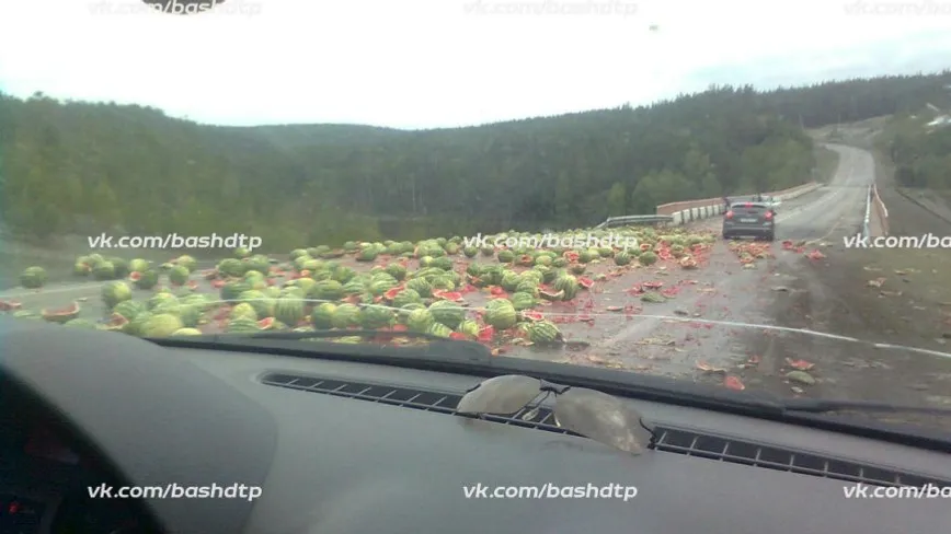 УФА, 18 авг 2018. /ИА «Башинформ»/. На дороге Зилаир - Иснгулово опрокинулся прицеп «КамАЗа» с арбузами, сообщили подписчики группы «БашДТП». Новость вызвала поток комментариев - шутливых и серьезных. «Ездят с большим перегрузом, вот и происходят такие вещи», «Не пряники, но тоже праздник», «Жаль, что нет телепортации». О пострадавших и причинах аварии не сообщается.