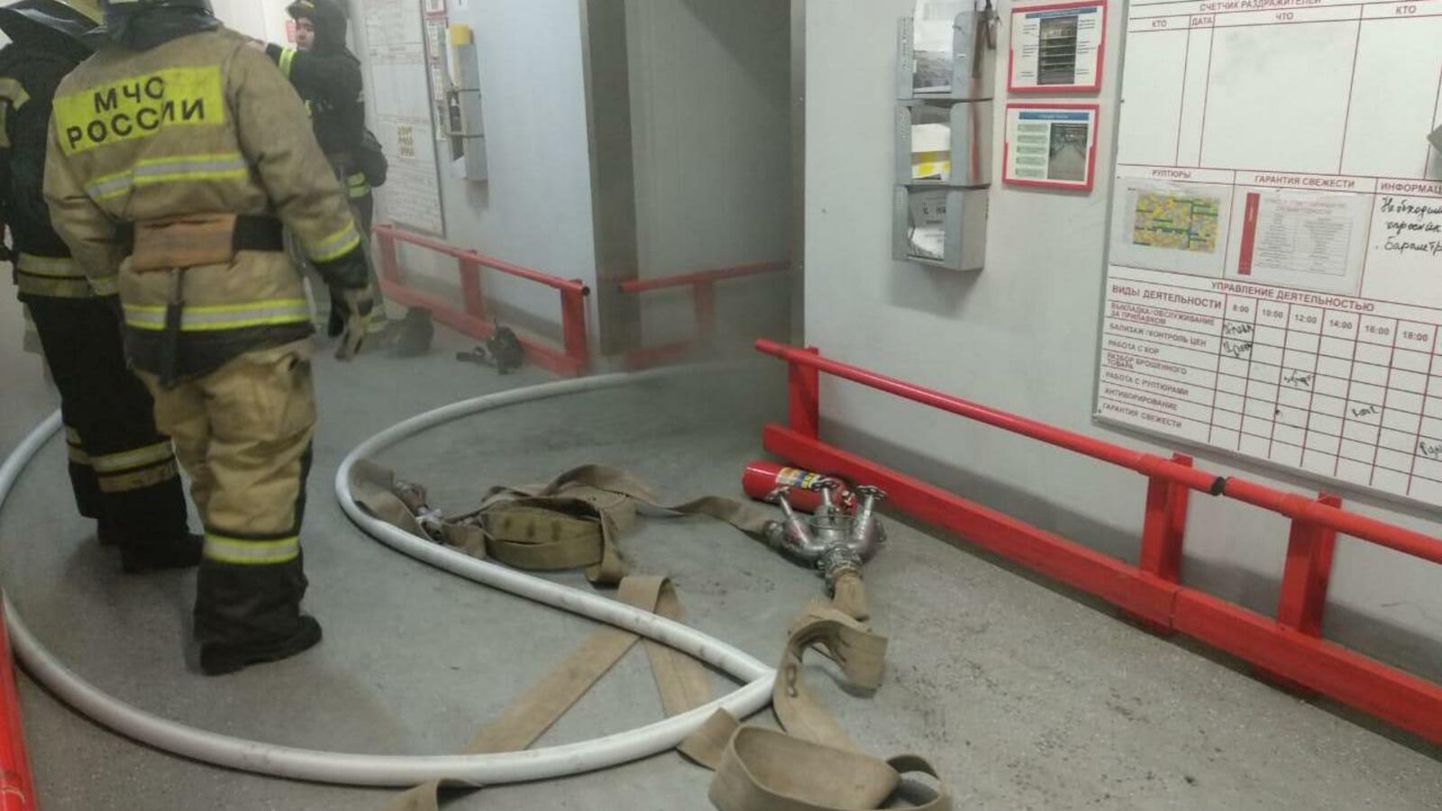 В результате ЧП сгорели коробки для продуктов на третьем уровне холодильной камеры, на площади 2 кв.м. Из людей никто не пострадал.