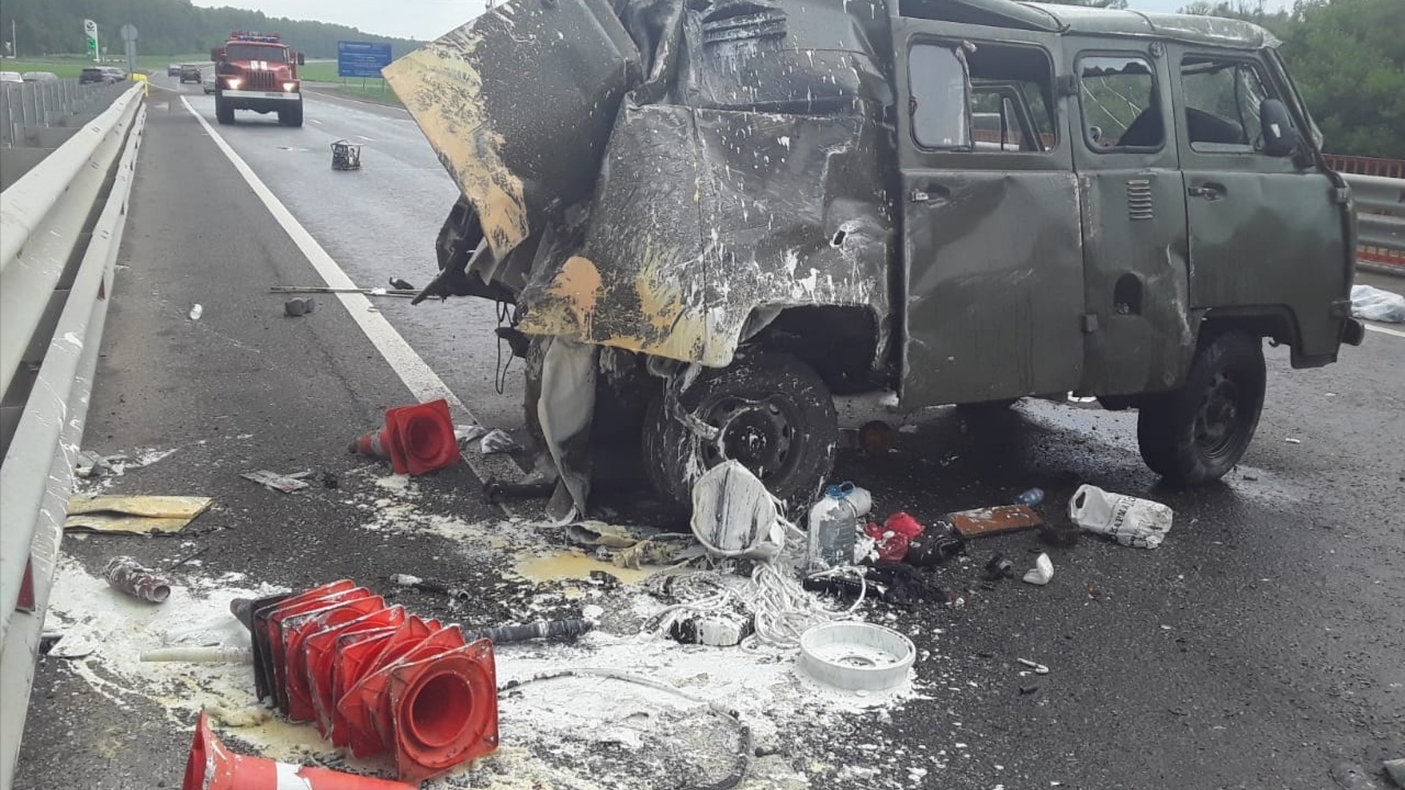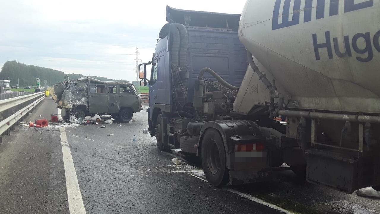 Большегруз Volvo с цистерной столкнулся с микроавтобусом УАЗ. Погибло четыре человека, трое доставлены в больницу с травмами.