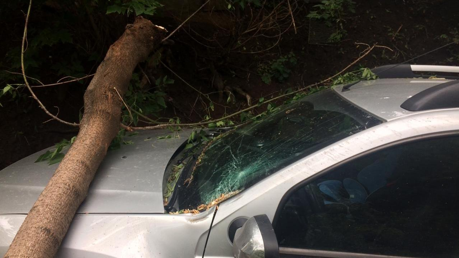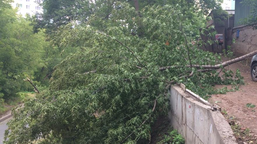 В Уфе минувшей ночью ураган валил деревья, повреждены автомобили