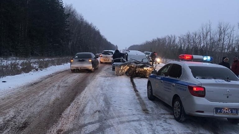 В Башкирии в ДТП со встречной иномаркой пострадали три пассажира автомобиля «Лада Ларгус»