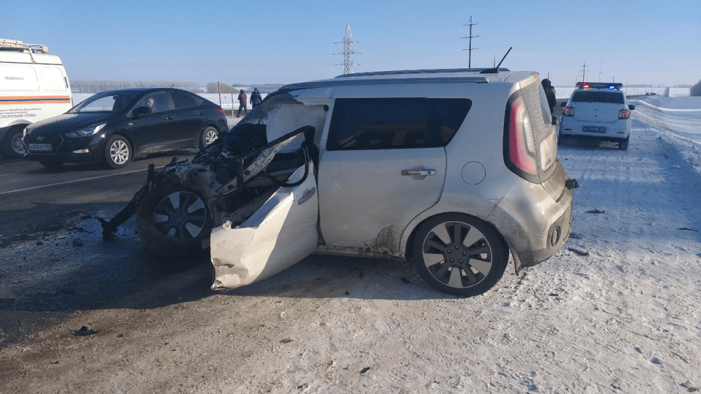 В Башкирии при столкновении с грузовиком пострадала семья из KIA Soul