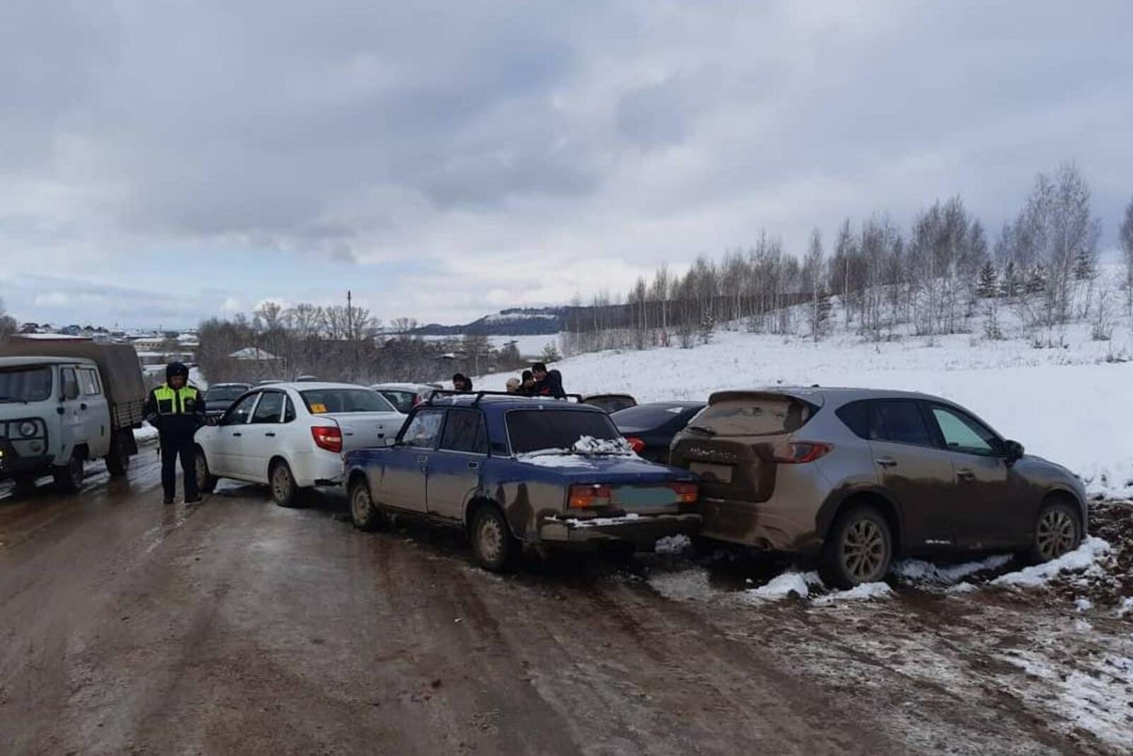 В Башкирии из-за несоблюдения безопасной дистанции столкнулись сразу шесть автомобилей