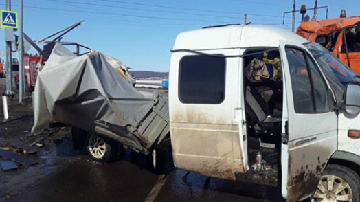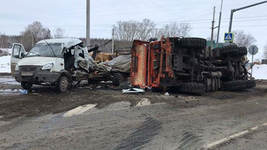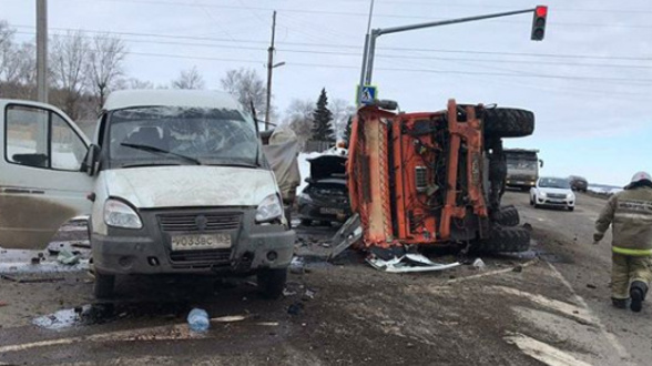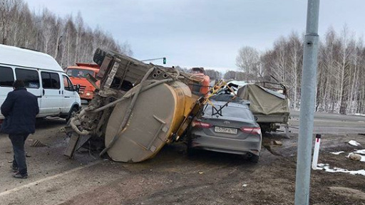 Появилось видео столкновения ГАЗели с КамАЗом, опрокинувшимся на легковую машину