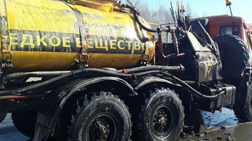 В результате аварии также произошел разлив перевозимой жидкости. ГИБДД со ссылкой на специалистов сообщает, что жидкость не представляет опасности для людей.
