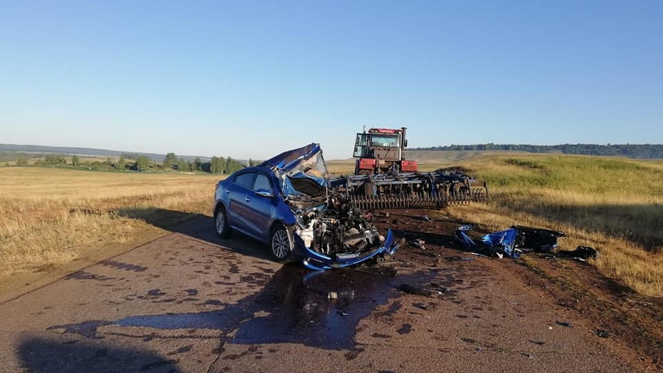 Смертельная авария произошла в Ишимбайском районе Башкирии. 30 июня после столкновения с трактором погиб 31-летний водитель Kia Rio – житель ЯНАО.
