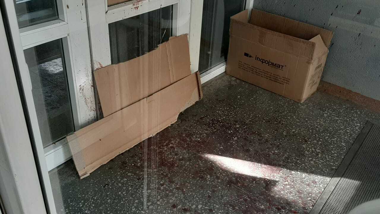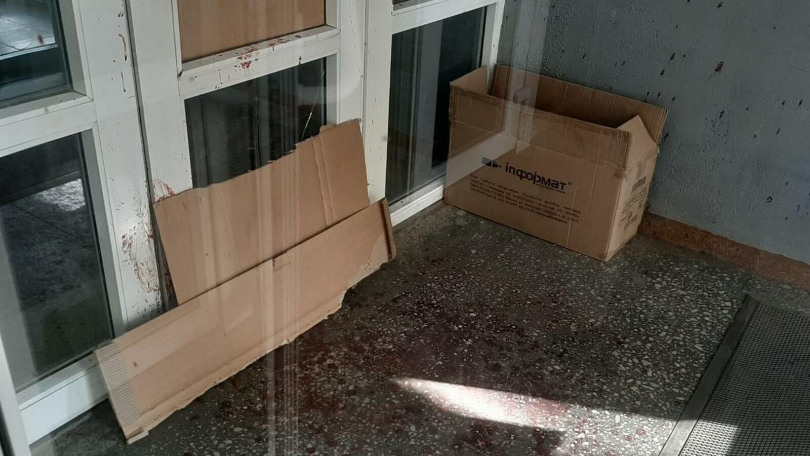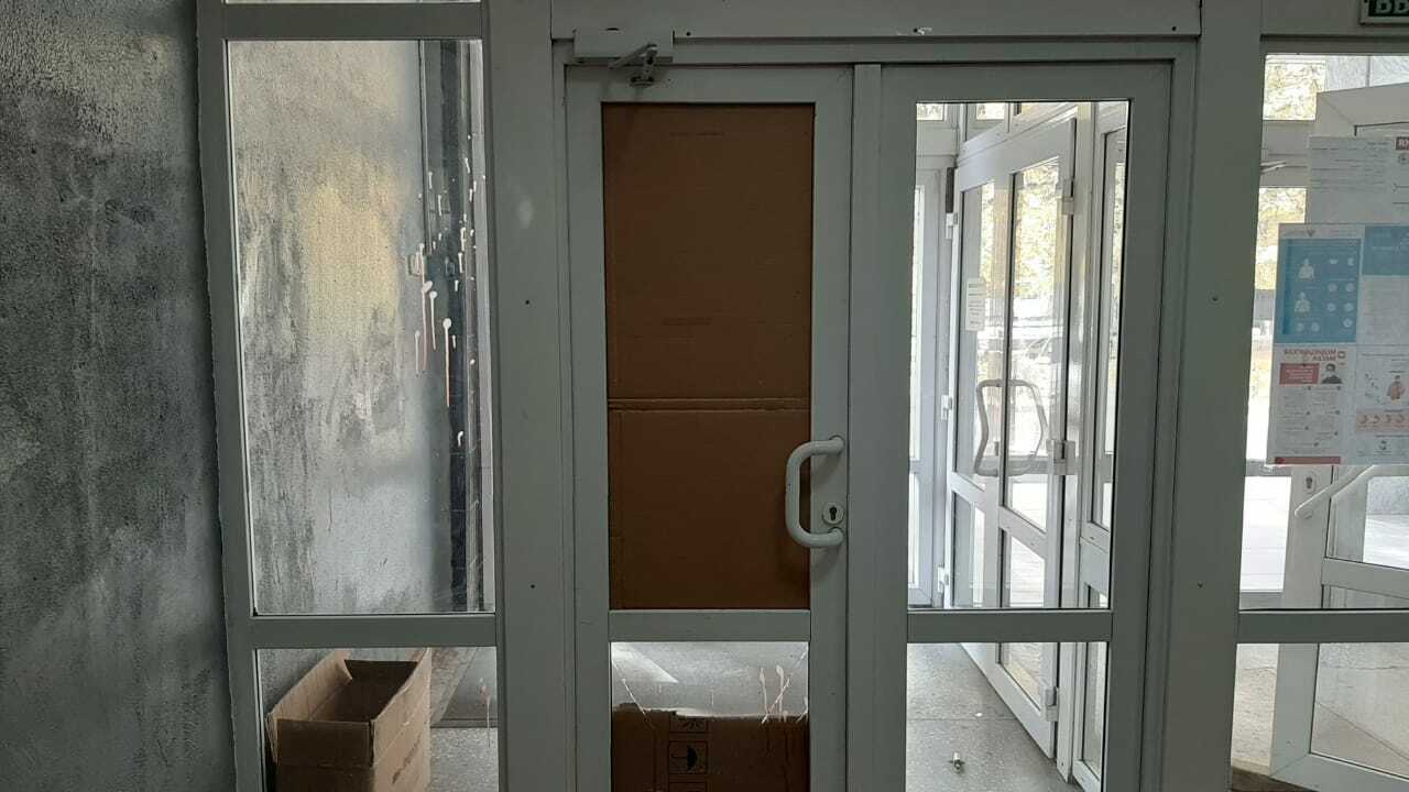 Двери Дома печати временно заделаны картоном. Сумма ущерба устанавливается.