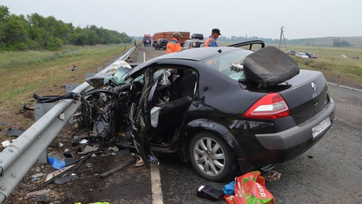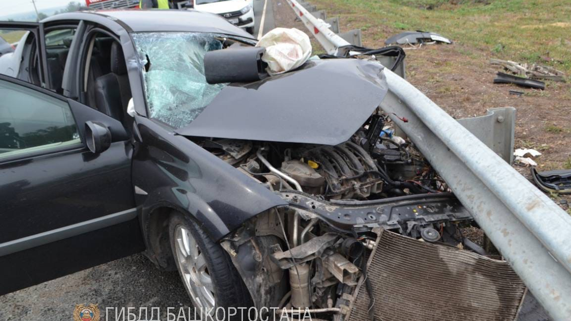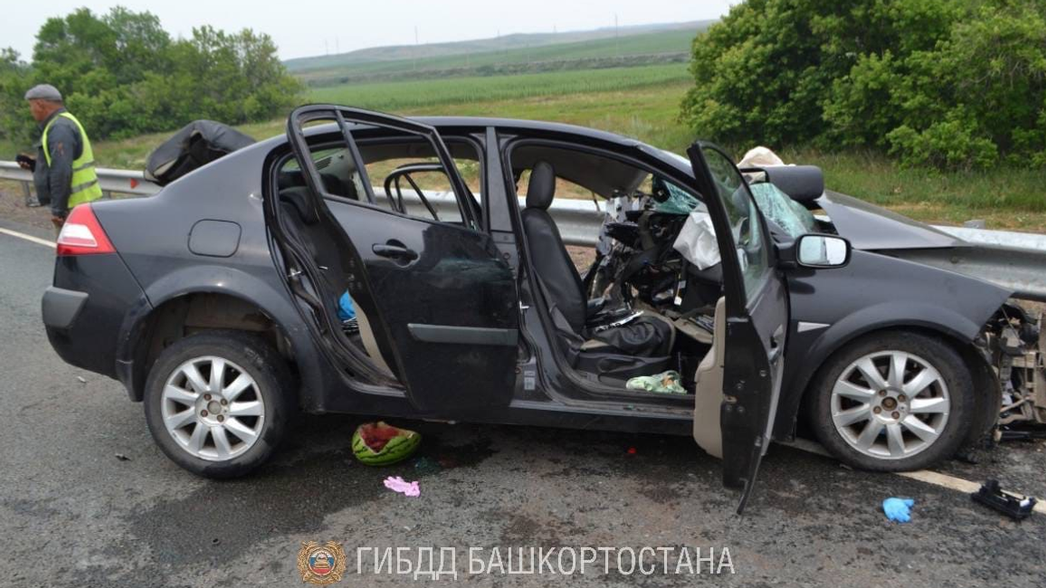 В Куюргазинском районе Башкирии накануне днем на 251 км автодороги Уфа-Оренбург касательно столкнулись Renault Megane и встречный «КамАЗ».