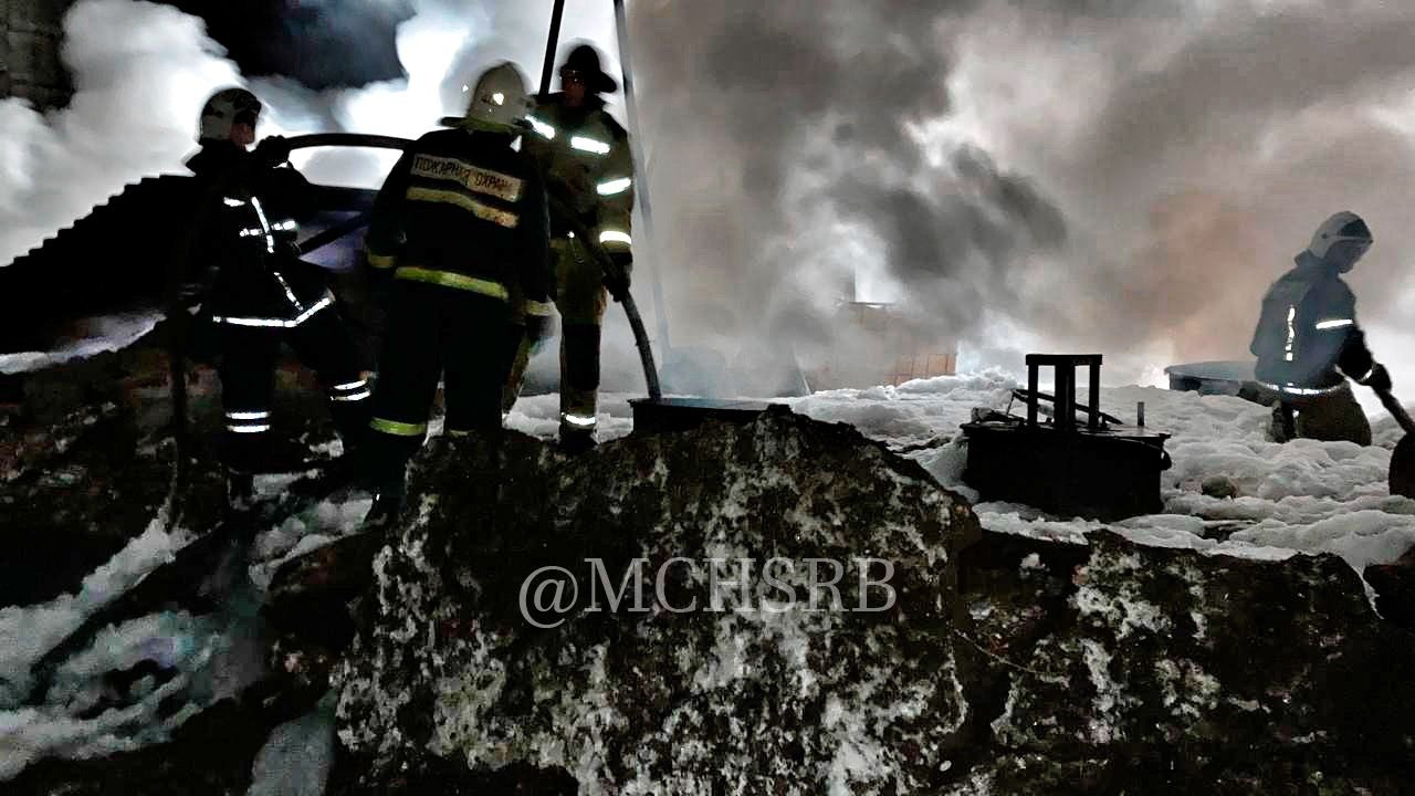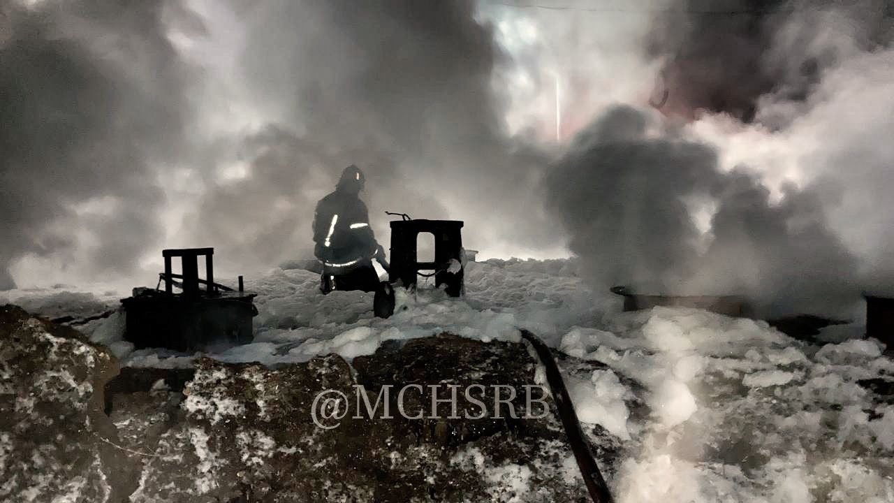 Утром, в 4.42 открытое горение было ликвидировано. Тушение продолжается.