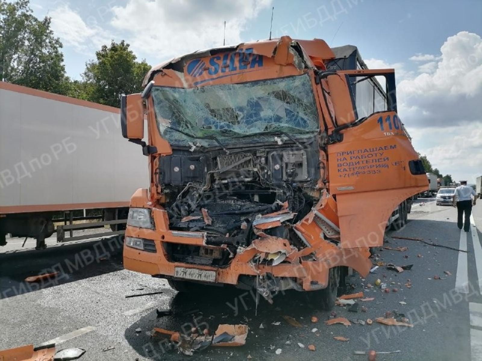По имеющимся данным, сегодня, 2 августа, около двух часов дня в Иглинском районе на 1542 км автодороги Самара - Уфа - Челябинск столкнулись три попутные грузовые фуры — два MAN и Scania.