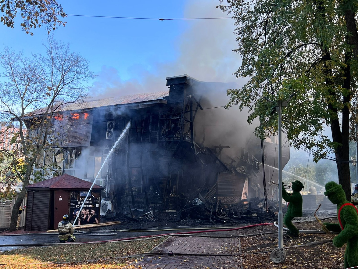 По словам Мустафина, сейчас готовится проект реконструкции всего парка, он должен был затронуть в том числе и здание сгоревшего ресторана. На данный момент пожарным удалось ликвидировать открытое горение. Предположительно, здание уже не подлежит восстановлению.