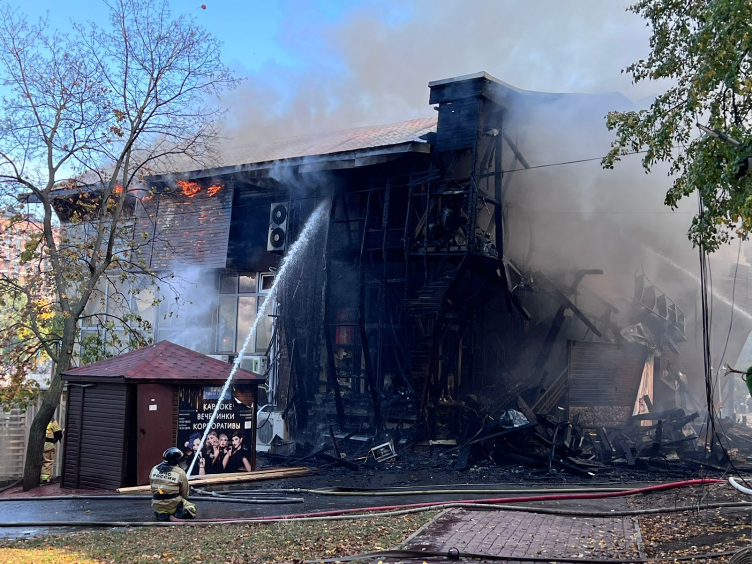 «Столб дыма виден издалека, сильный запах гари. На месте собралось много прохожих, которые пытаются подойти горящему зданию, чтобы сделать фото и видео. По словам одного из правоохранителей, есть угроза взрыва газовых баллонов, поэтому людей близко не подпускают. Руководство ресторана на данный момент общается с дознавателями. Сотрудники ГИБДД перекрыли проезд со стороны улицы Карла Маркса, все автомобили разворачивают», - передает с места происшествия корреспондент «Башинформа» Ксения Калинина.