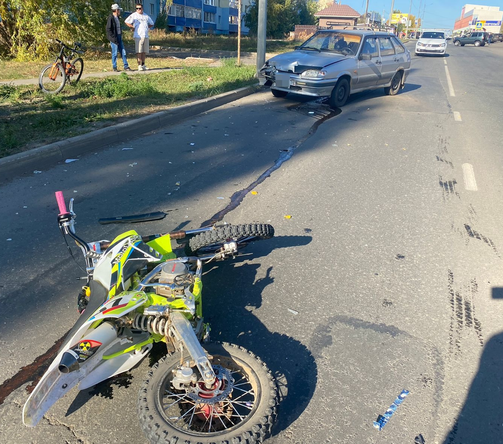 «По предварительным данным, возле дома № 55 по улице Дорожной 13-летний подросток, управляя питбайком, при заезде во внутридворовую территорию выехал на встречную полосу, не уступил дорогу машине марки «ВАЗ-2114» под управлением 43-летнего водителя. Произошло столкновение. Мальчик с различными травмами, переломами доставлен в местную больницу, — пояснили в ведомстве. — В августе этого года данный несовершеннолетний уже останавливался сотрудниками ГИБДД. Материалы направлены в комиссию по делам несовершеннолетних, рапорт зарегистрирован и направлен инспекторам ПДН для привлечения законных представителей по ст. 5.35 КоАП РФ «неисполнение родителями или иными законными представителями несовершеннолетних обязанностей по содержанию и воспитанию несовершеннолетних».