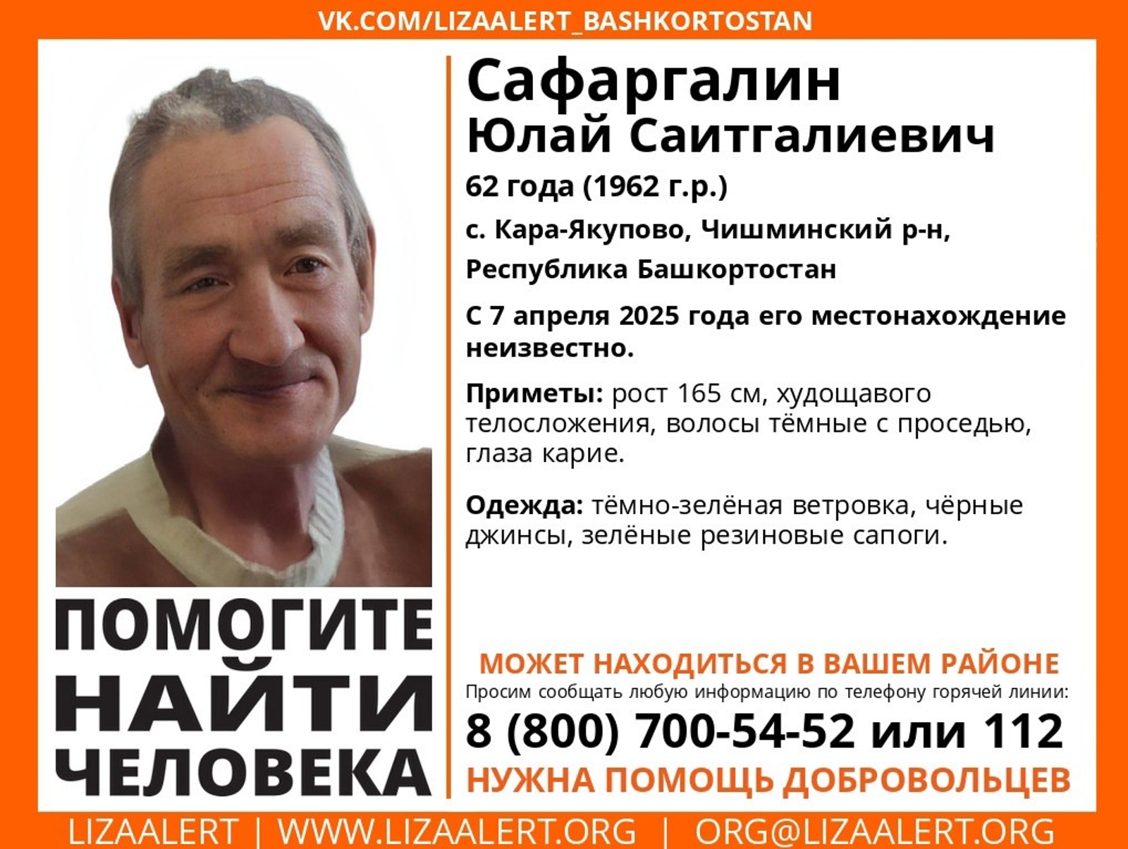 Как сообщает поисковый отряд «Лиза Алерт Башкортостан», с 7 апреля 2025 года его местонахождение неизвестно.