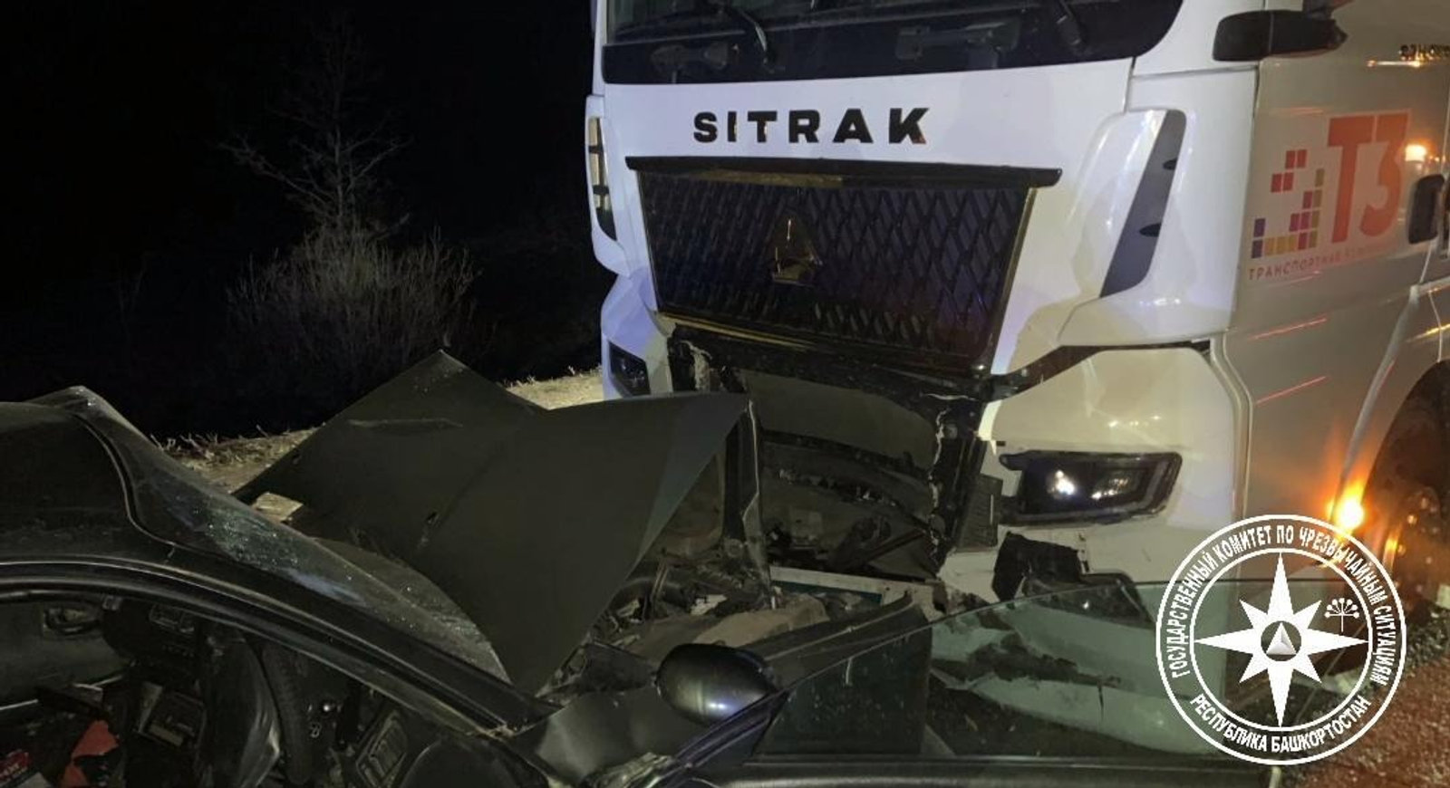 В Башкирии 74-летний водитель выжил в прямом столкновении с фурой. Авария произошла ночью близ посёлка Верный Иглинского района — «лоб в лоб» ударились Toyota Chaser и большегруз Sitrak.
