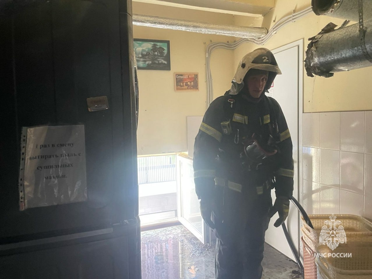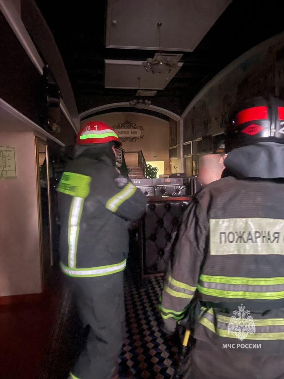 По прибытии на место огнеборцами МЧС России проведено обследование всех помещений с помощью тепловизора. Наблюдалось небольшое задымление здания на втором этаже. Горения не обнаружено.