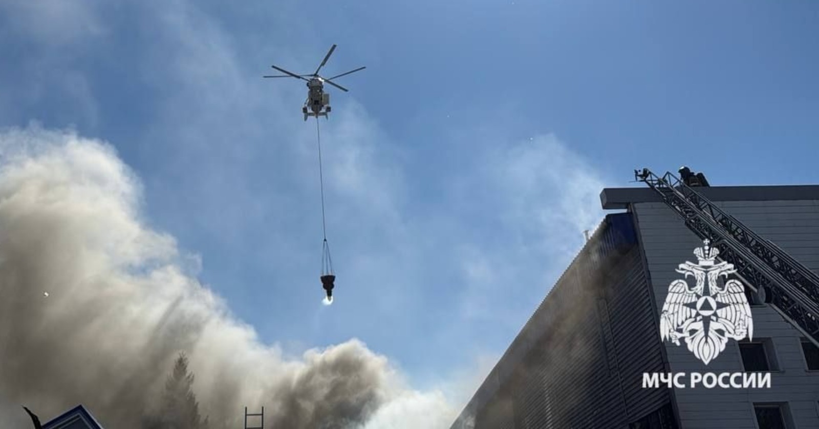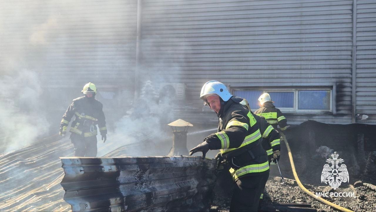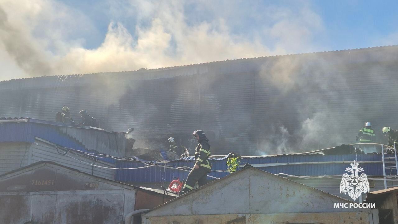 Крупный пожар на Индустриальном шоссе в Уфе локализовали на площади 800 «квадратов». По данным МЧС по РБ, сейчас проводится проливка и разбор кровли здания. Осуществлено 6 сбросов с вертолёта общим объёмом воды 30 тонн. Звенья газодымозащитной службы тушат огонь внутри здания. Пострадавших нет.