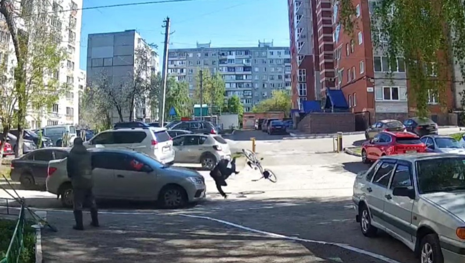 Мальчик на велосипеде угодил под колеса машины. Инцидент произошел во дворе жилого дома на улице Авроры, 5/3. На записи, опубликованной в соцсетях, видно, как подросток спускается на велосипеде с пригорка и поворачивает прямо на движущийся автомобиль. И водителю, и школьнику трудно было бы предотвратить аварию, так как они могли заметить друг друга лишь в последний момент до столкновения. Мальчика от удара отбросило на асфальт. Сначала он встал, прихрамывая, затем сел на асфальт и зарыдал от боли.