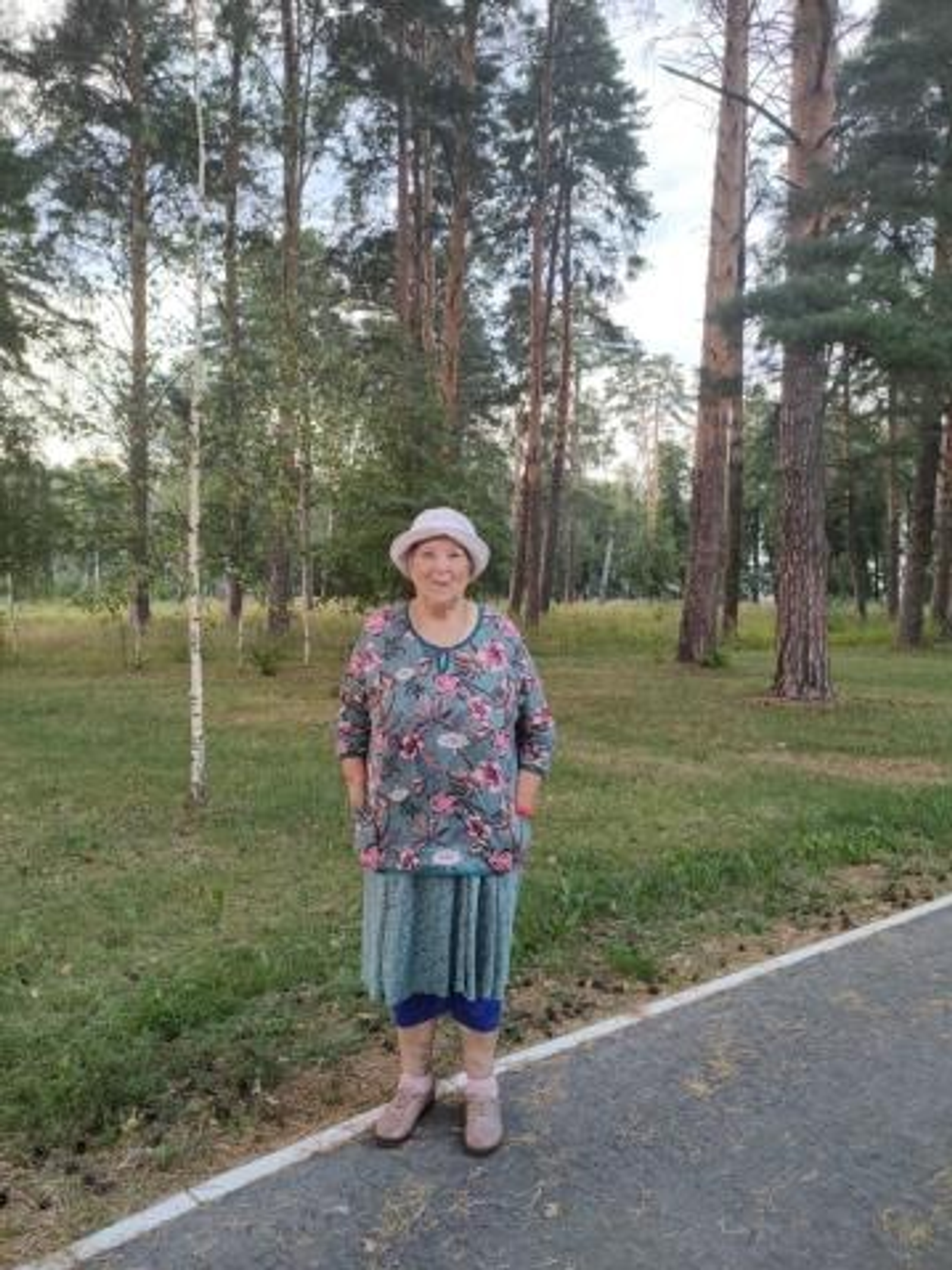 Была одета: предположительно темное платье в цветочек, серая бейсболка.