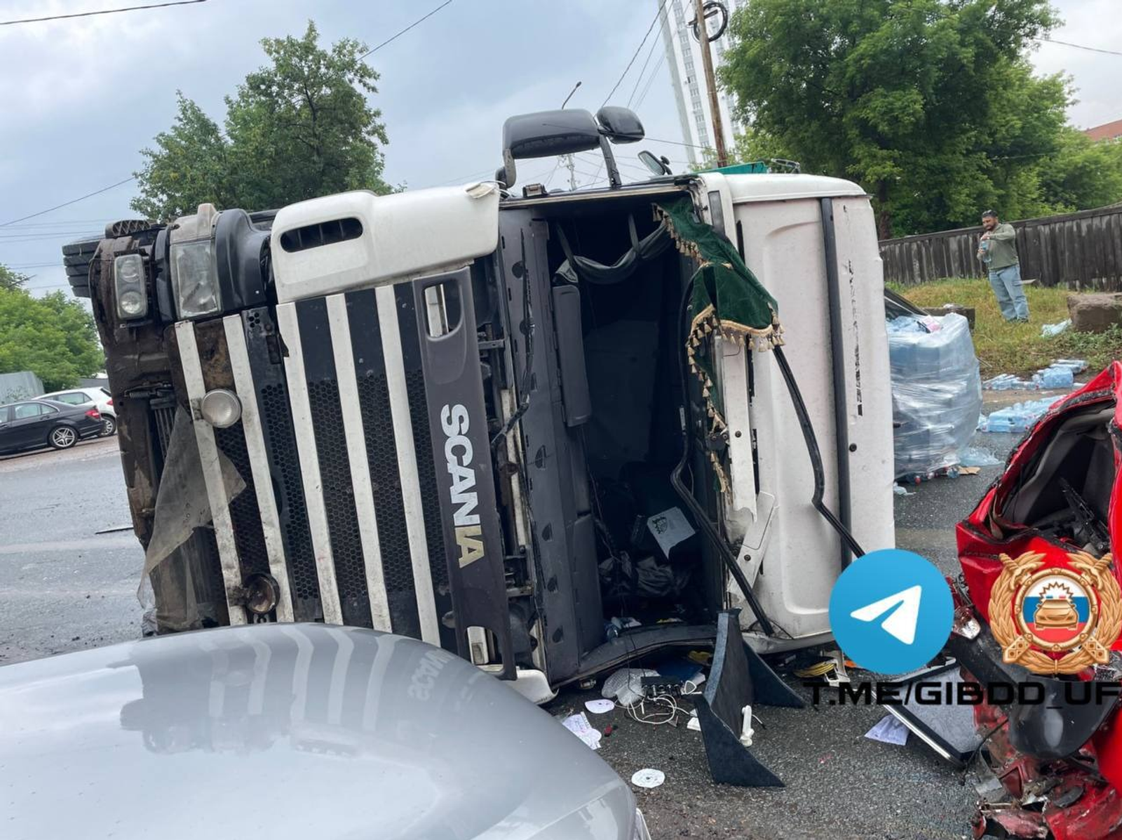 В результате аварии фура перевернулась и перекрыла дорогу, сообщает управление гражданской защиты. Поэтому водителей просят выбирать альтернативные пути движения.