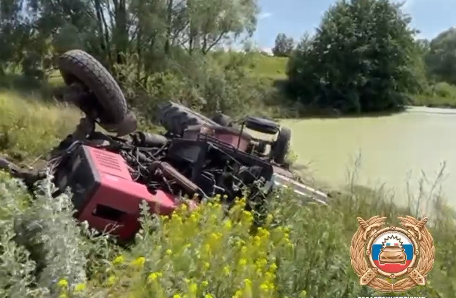 Молодой мужчина за рулем трактора «Белорус» с прицепом съехал в левый кювет и, по всей видимости, пытаясь спастись, выпрыгнул из кабины по ходу движения, однако машина опрокинулась на него.