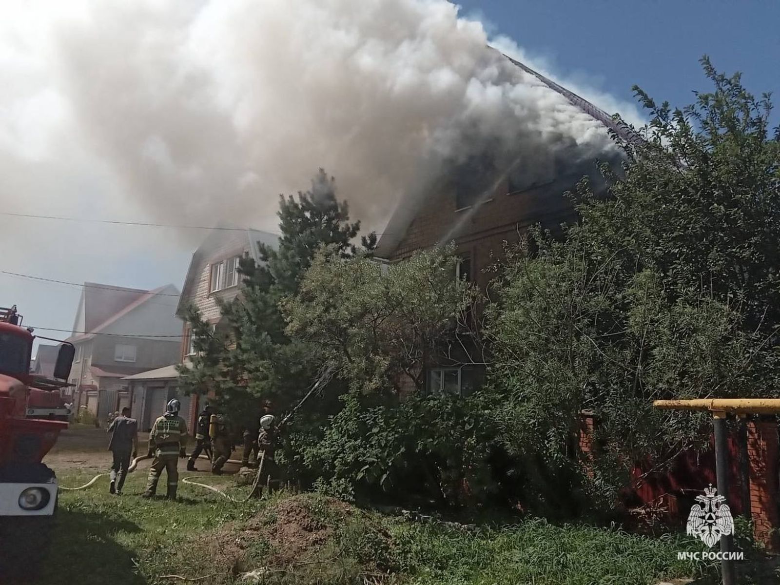 Пожар затронул 150 кв. м. Причину возгорания установят пожарный дознаватель и эксперт испытательной лаборатории. Также проведён мониторинг обстановки с беспилотника, сообщили в МЧС по Башкирии.