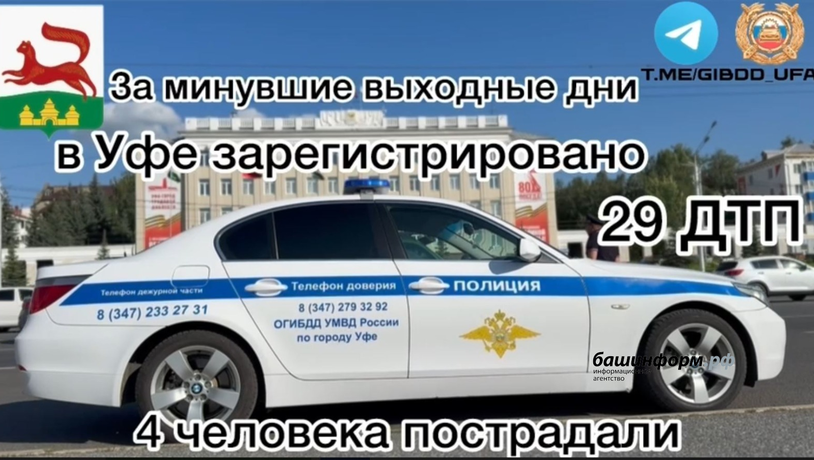 По данным ГАИ Уфы, за минувшие выходные дни на территории Уфы автоинспекторами зарегистрировано 29 дорожно-транспортных происшествий, в которых пострадали 4 человека.