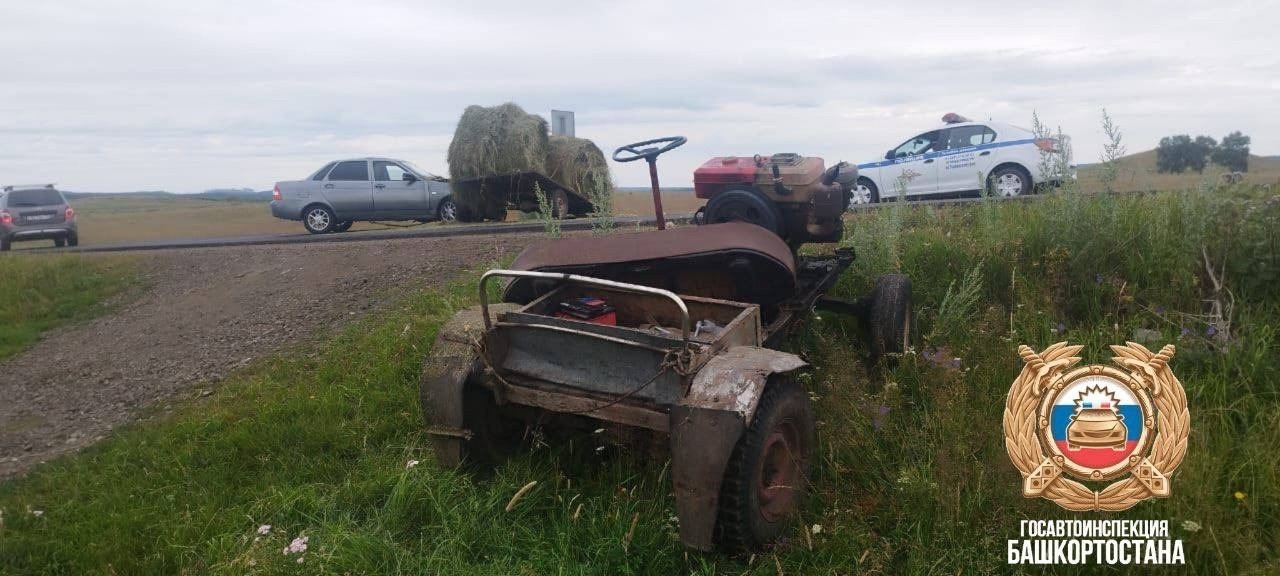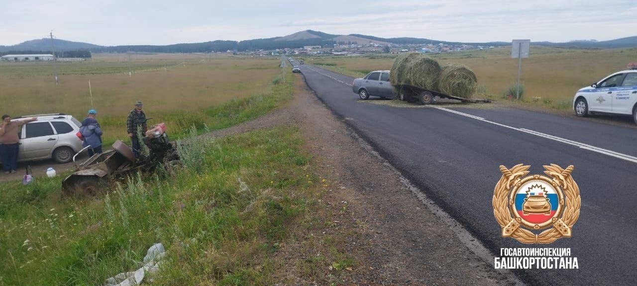 По предварительным данным ГАИ РБ, 31-летний житель села Ургуново, не имеющий водительского удостоверения, управлял не зарегистрированным в установленном порядке трактором, груженным сеном. Он выехал на главную дорогу и, не убедившись в безопасности совершаемого маневра, столкнулся с «Приорой». Выяснилось, что 25-летний водитель «Лады» также не имеет водительского удостоверения, а его машина снята с учета.