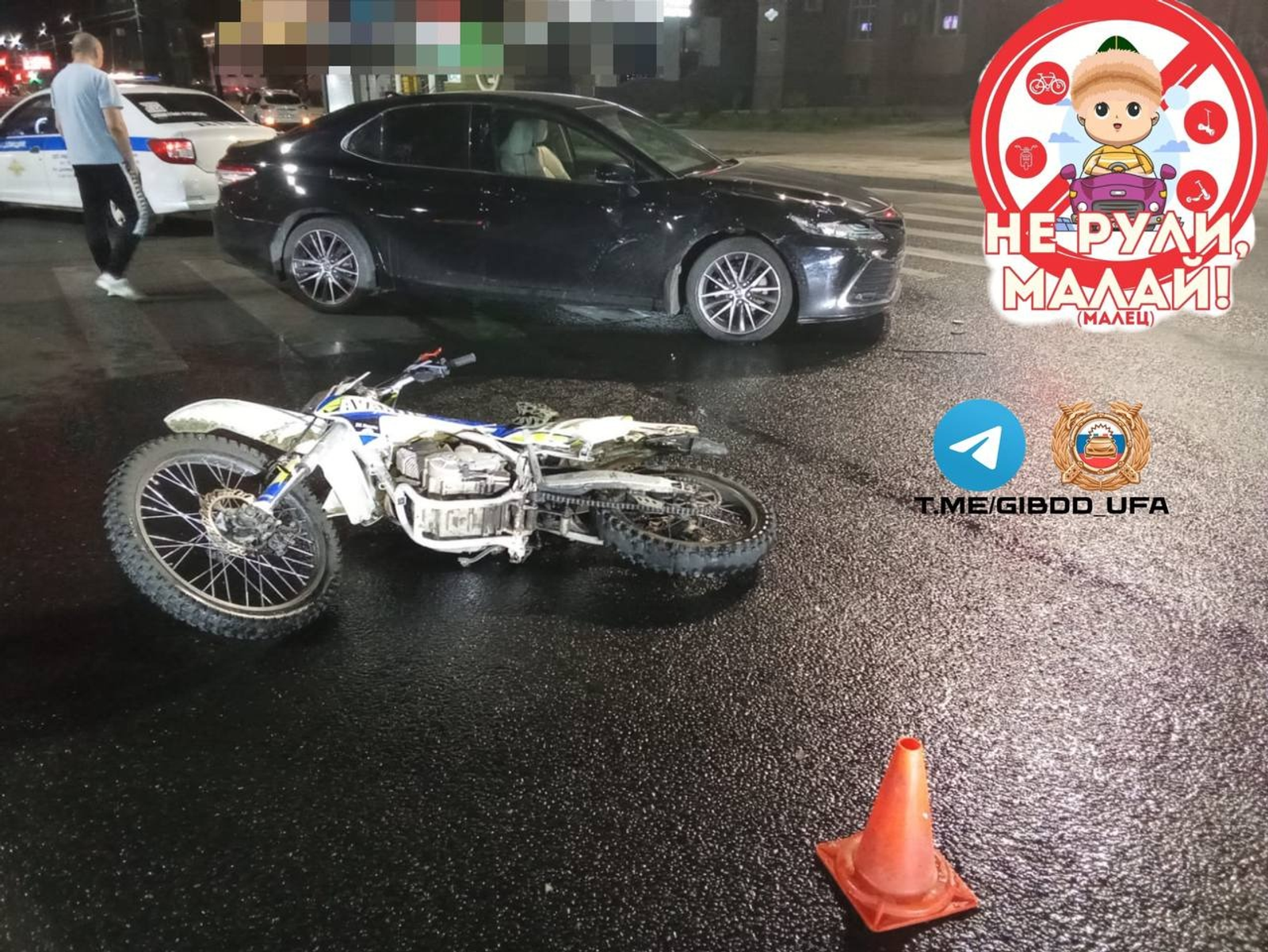 Как выяснили сотрудники уфимской госавтоинспекции, за рулем питбайка находился 15-летний школьник, который не имеет водительского удостоверения. На место ДТП вызвали родителей несовершеннолетнего, при них юного водителя отстранили от управления мототранспортом. Питбайк поместили на специализированную стоянку.