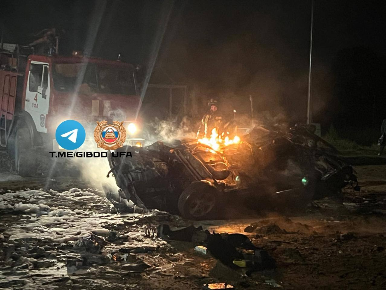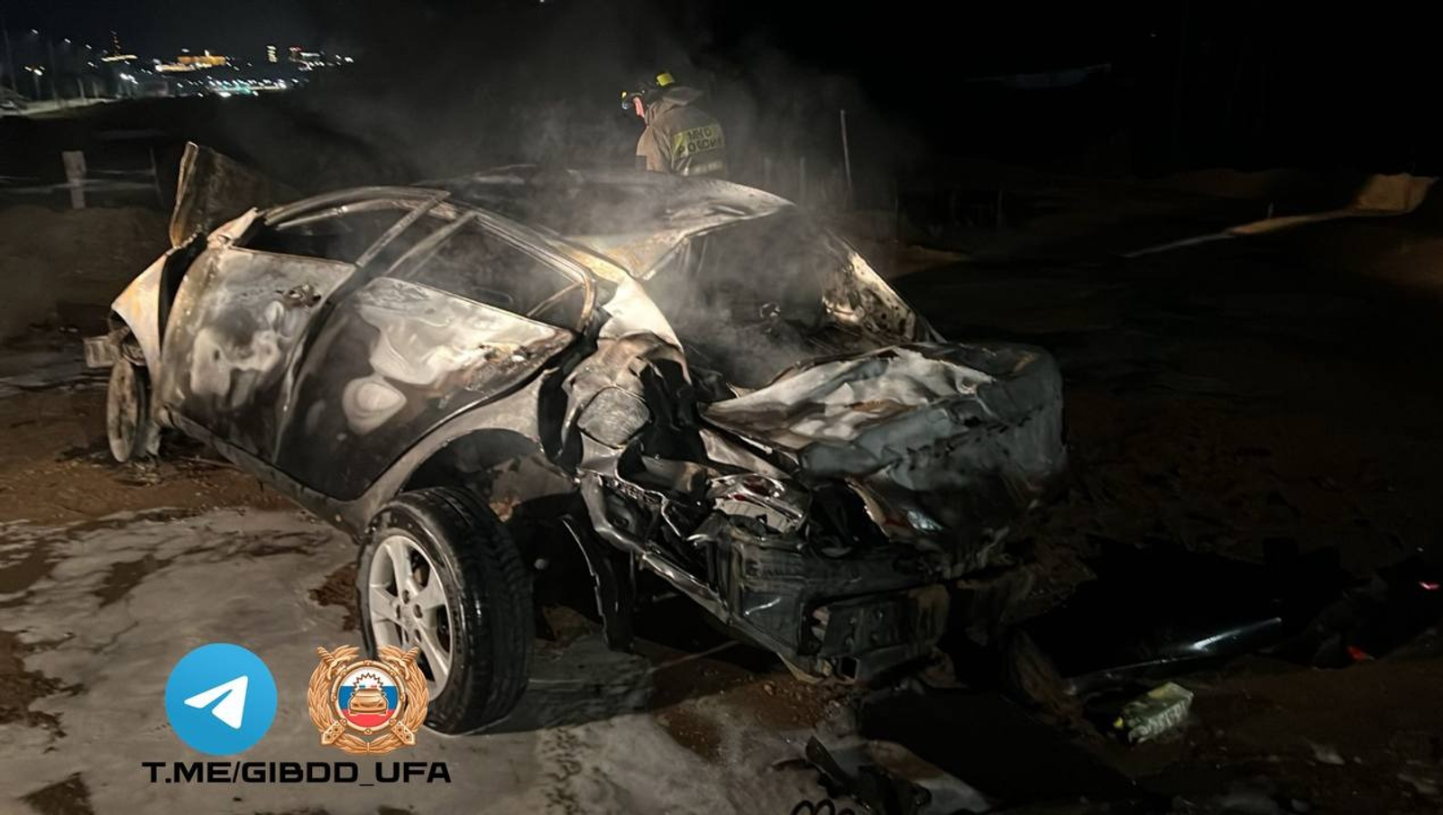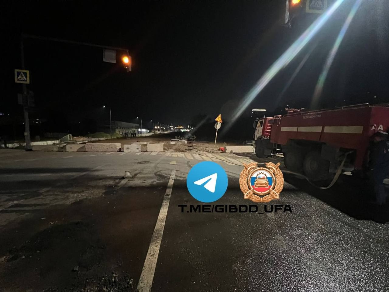 В первом часу минувшей ночи в Уфе автомобиль наехал на бетонные блоки, которые располагались впереди по ходу движения.