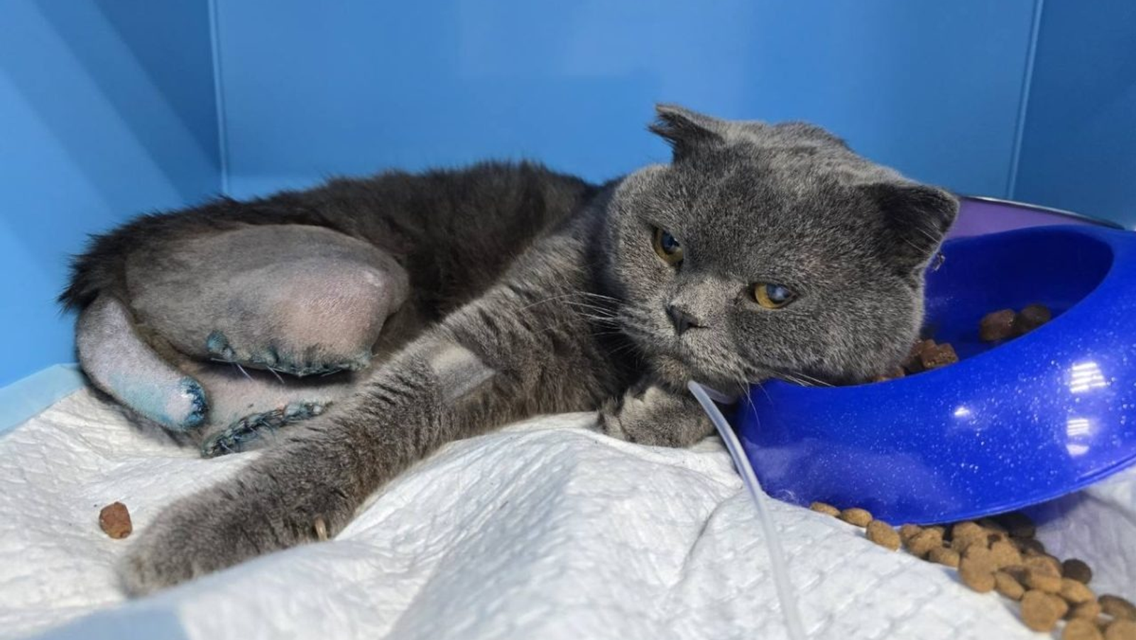 Травмы конечностей были настолько серьезными, что несчастному животному пришлось их ампутировать. Сейчас пушистый идет на поправку, получая необходимые антибиотики и перевязки.