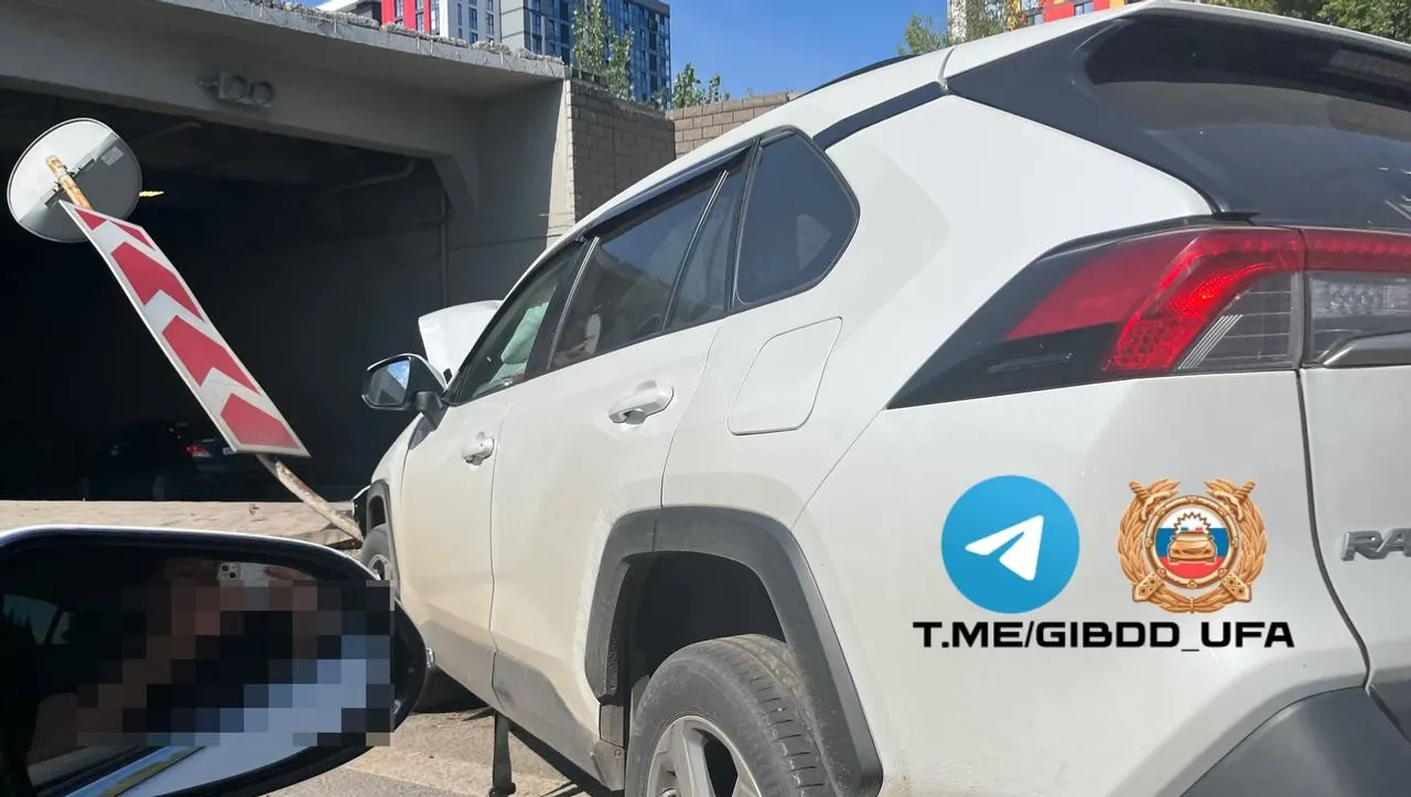 Водитель автомашины «Тойота Рав 4», следуя по проспекту Салавата Юлаева со стороны улицы Нуреева в сторону улицы Лесотехникума, совершил наезд на препятствие – разделитель полос в тоннеле.