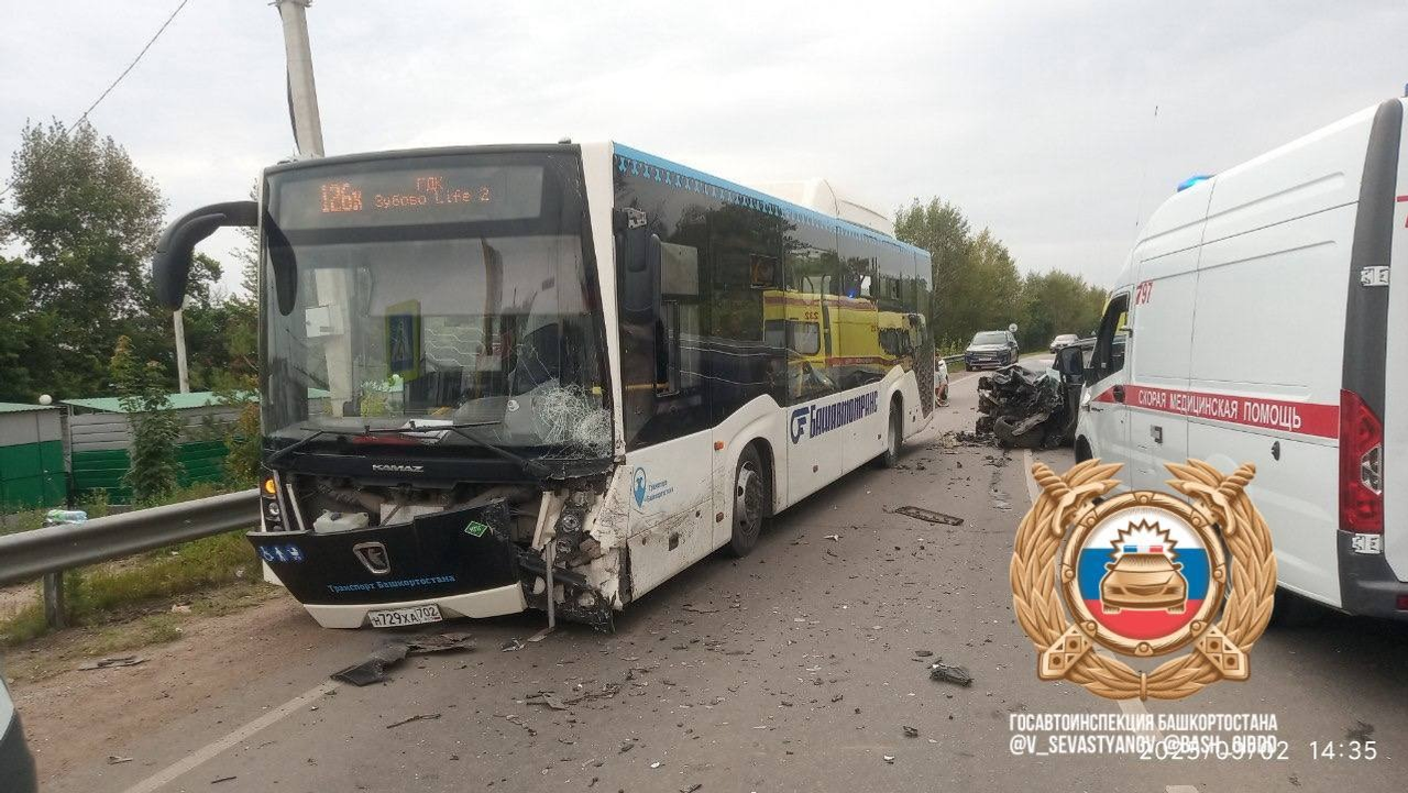 Авария случилась на улице Центральной в посёлке Зубово Уфимского района — столкнулись встречные автобус и кроссовер. Как сообщили в ГАИ Уфы, медицинская помощь потребовалась пятерым пассажирам НефАЗа (всего их было 25) и водителю иномарки. Автобус шёл по маршруту 126к «ГДК – Зубово – Лайф Гарден».