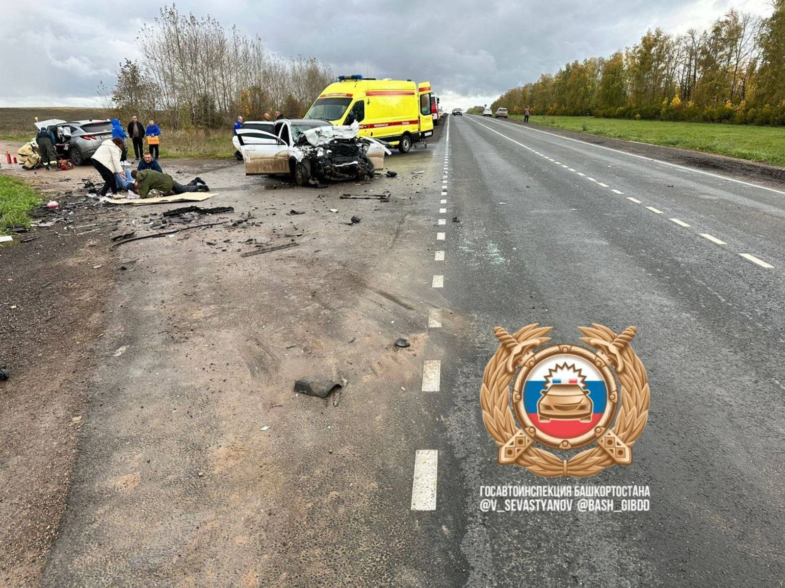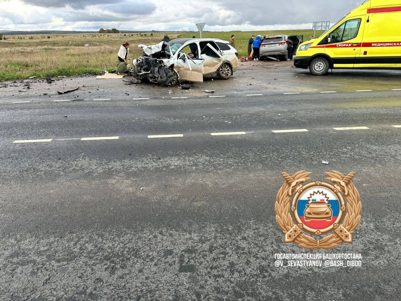 От удара погиб водитель «Лады», два его пассажира госпитализированы. Водитель иномарки и её 12-летняя дочь также попали в больницу с травмами.