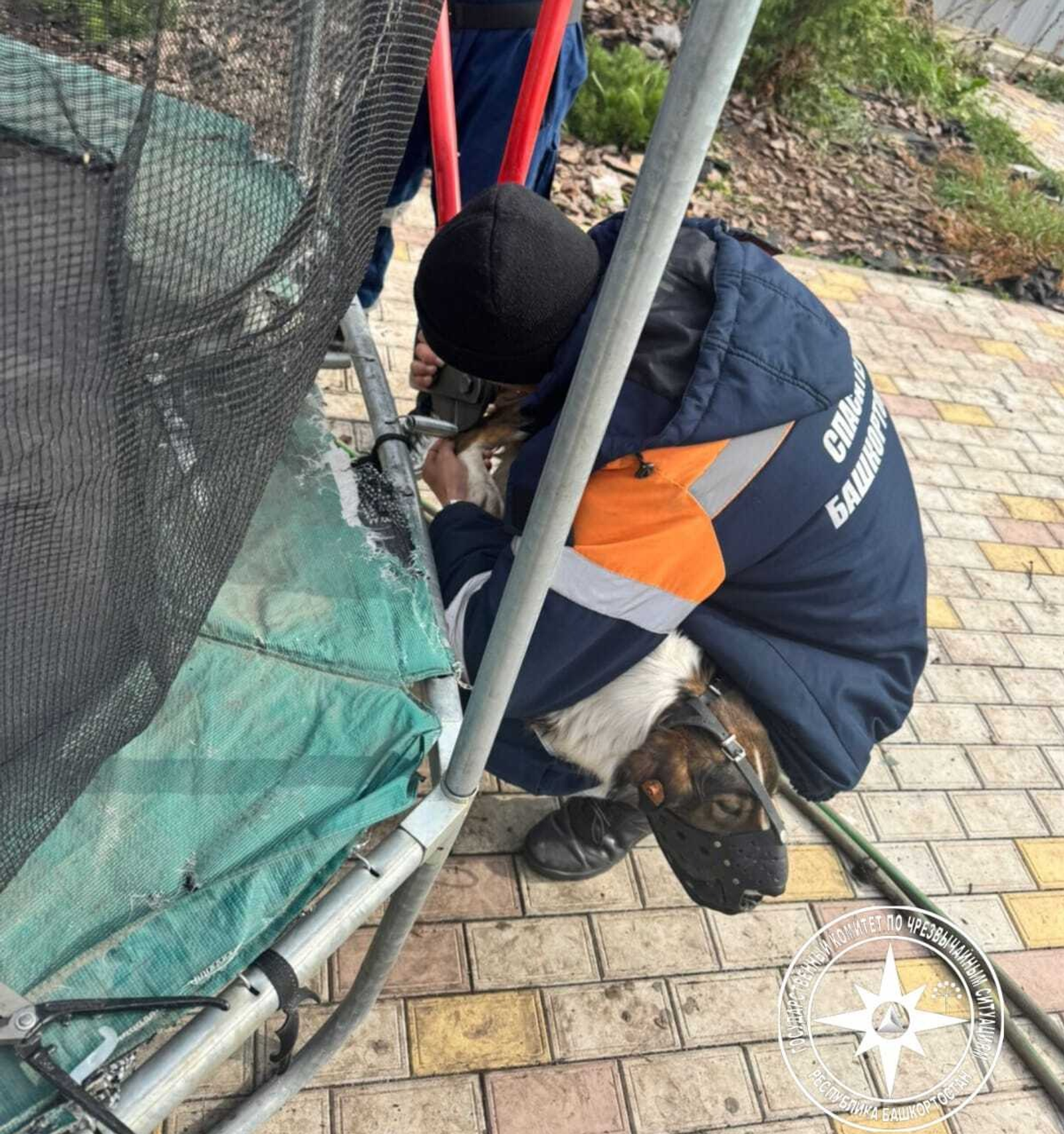 Сотрудники госкомитета РБ по ЧС выезжали на помощь собаке, чья задняя лапа застряла в пружине детского батута, сообщает пресс-служба ведомства. Инцидент произошел в Кировском районе Уфы.