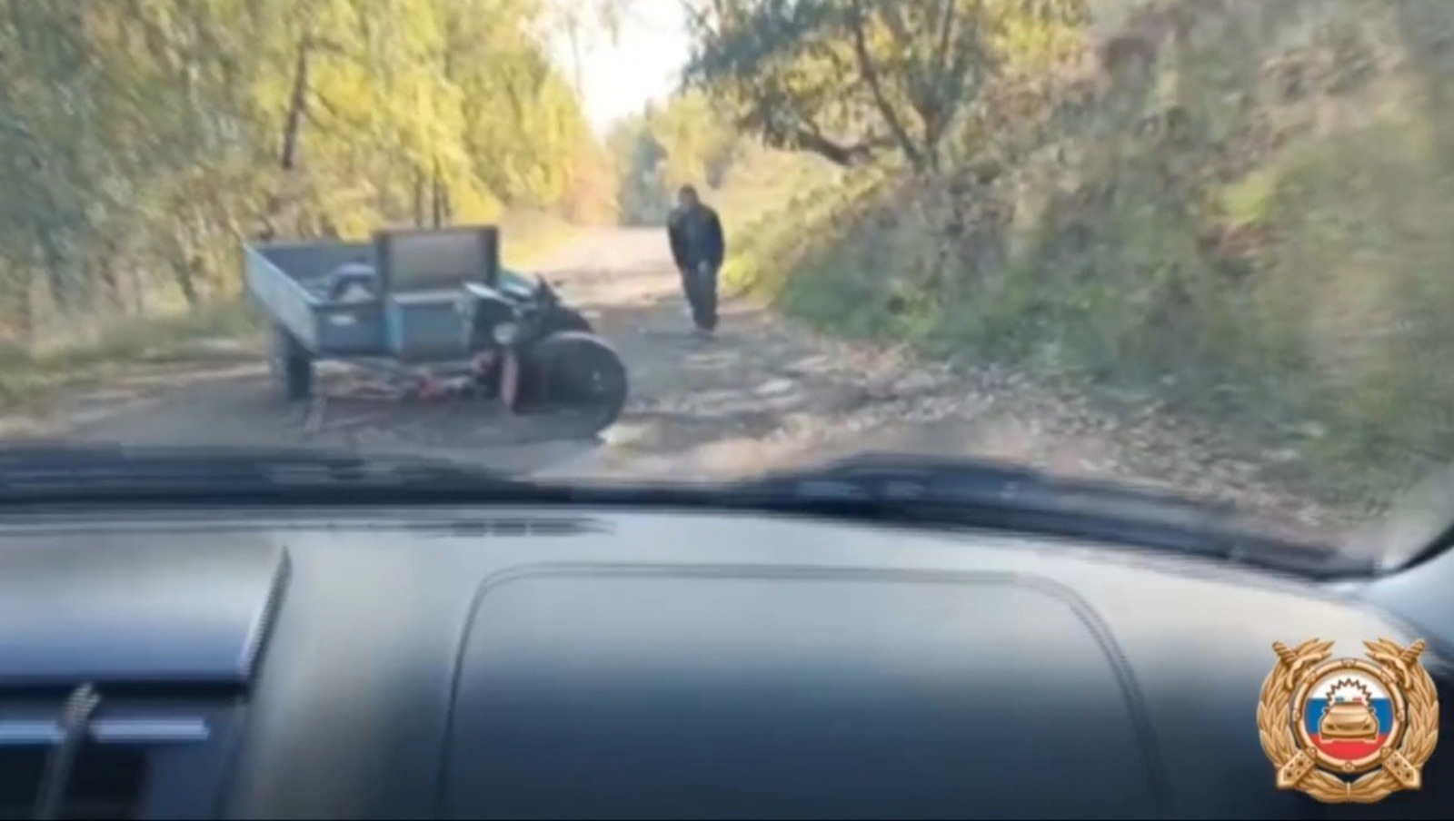 За рулем мотоблока «Brait» явно сидел нетрезвый водитель. Попытки его остановить на просёлочной дороге увенчались тем, что трёхколёсный транспорт развернуло, а водителя выбросило на землю.