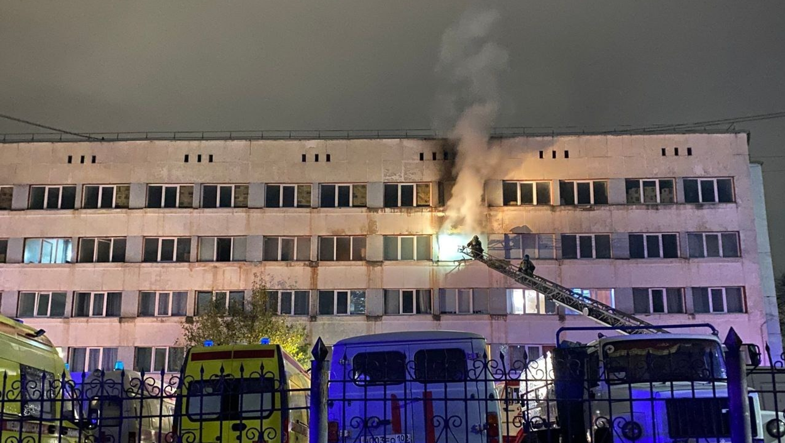 Ранее сообщалось, что возгорание произошло на четвертом этаже пансионата при больнице, где проживают сотрудники и временно пребывают пациенты и их родственники.
