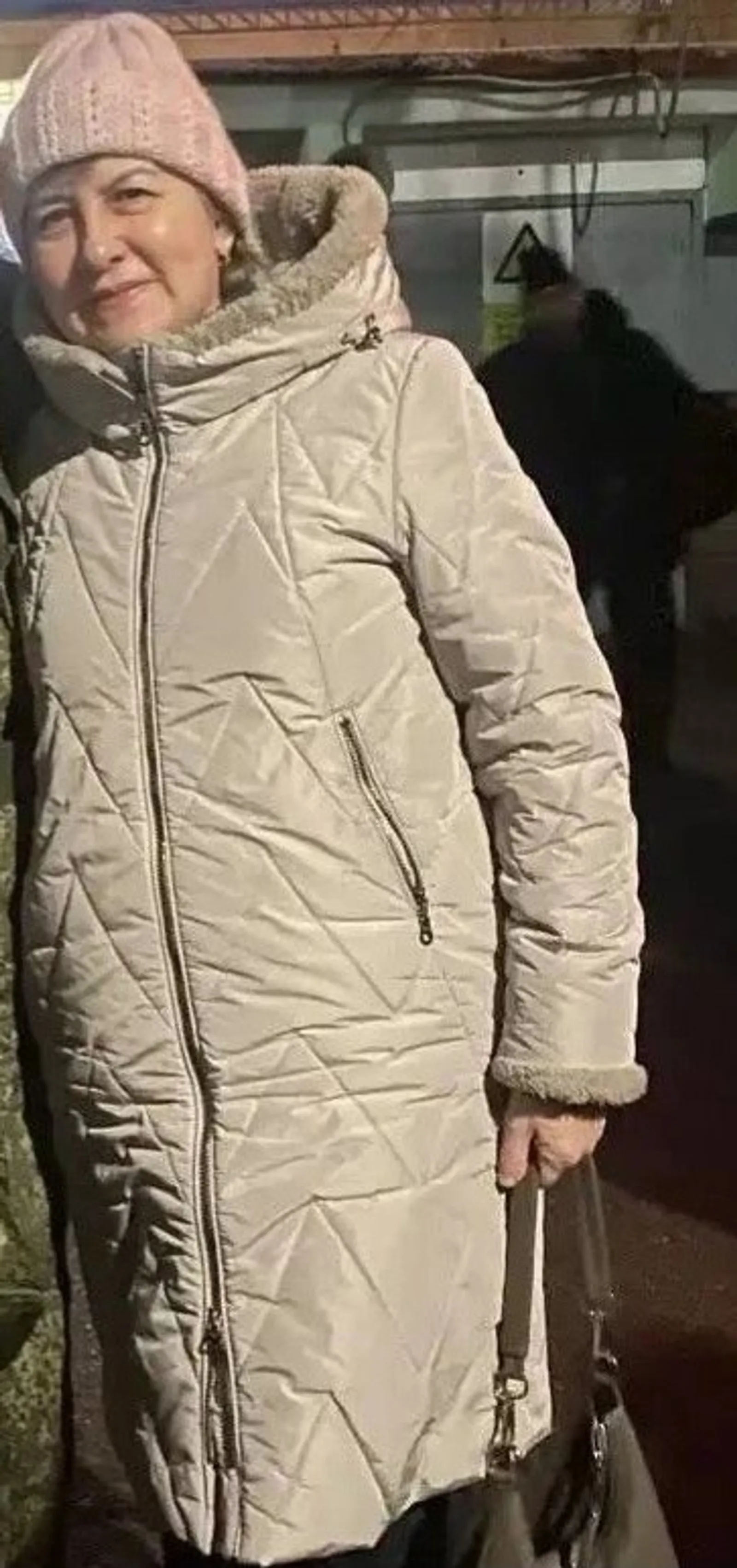 Была одета: в белую шапку, белый пуховик, темные джинсы и черные полуботинки.
